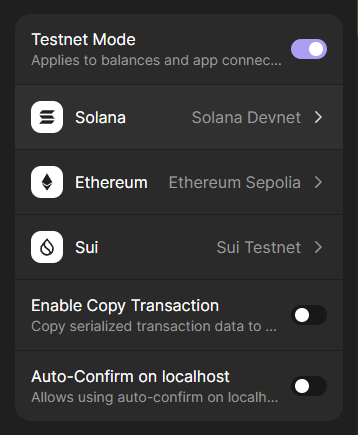 Now open your wallet, go to settings and enable testnet mode (or devnet mode depending on wallet).