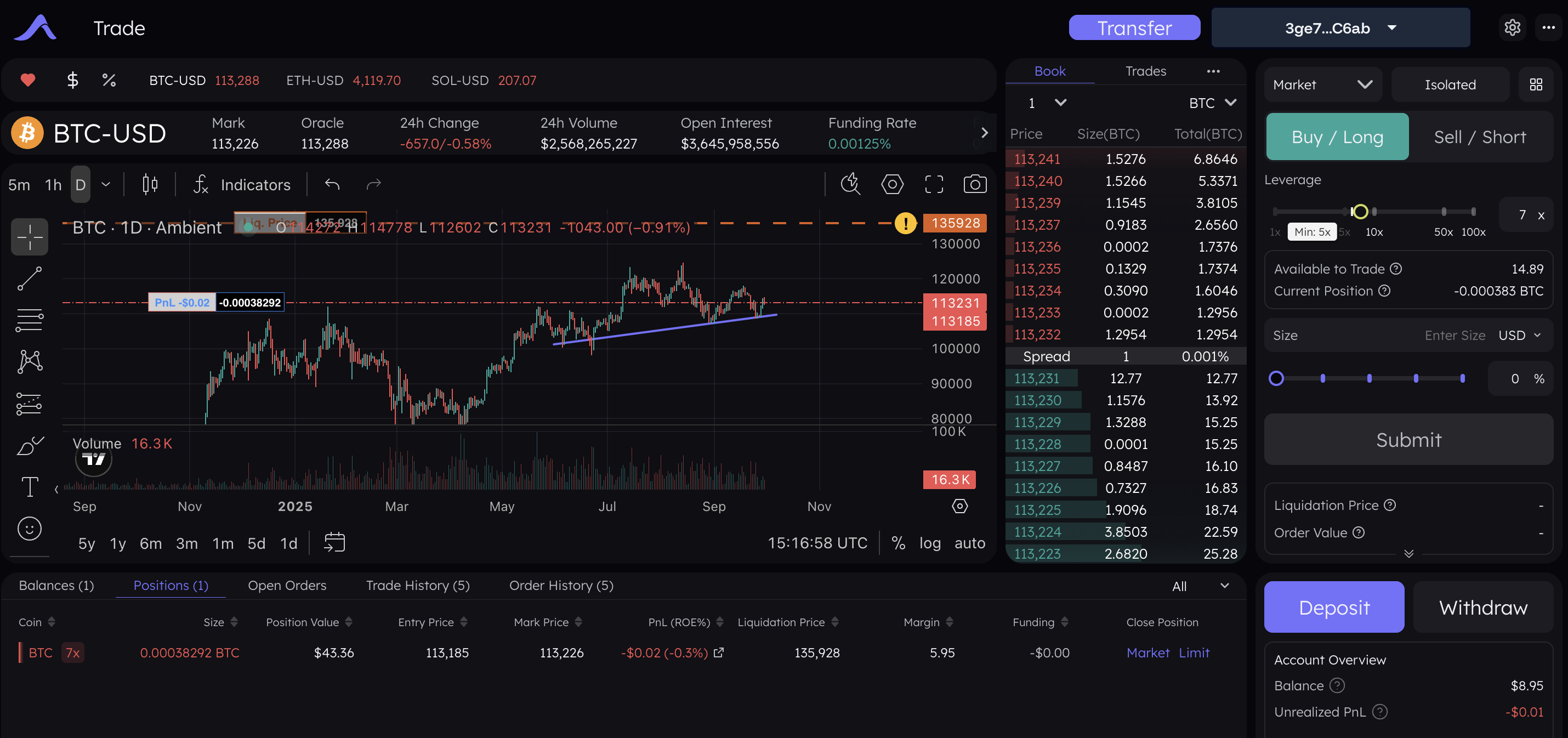 Next, let’s connect to Ambient Finance to start trading on the testnet: