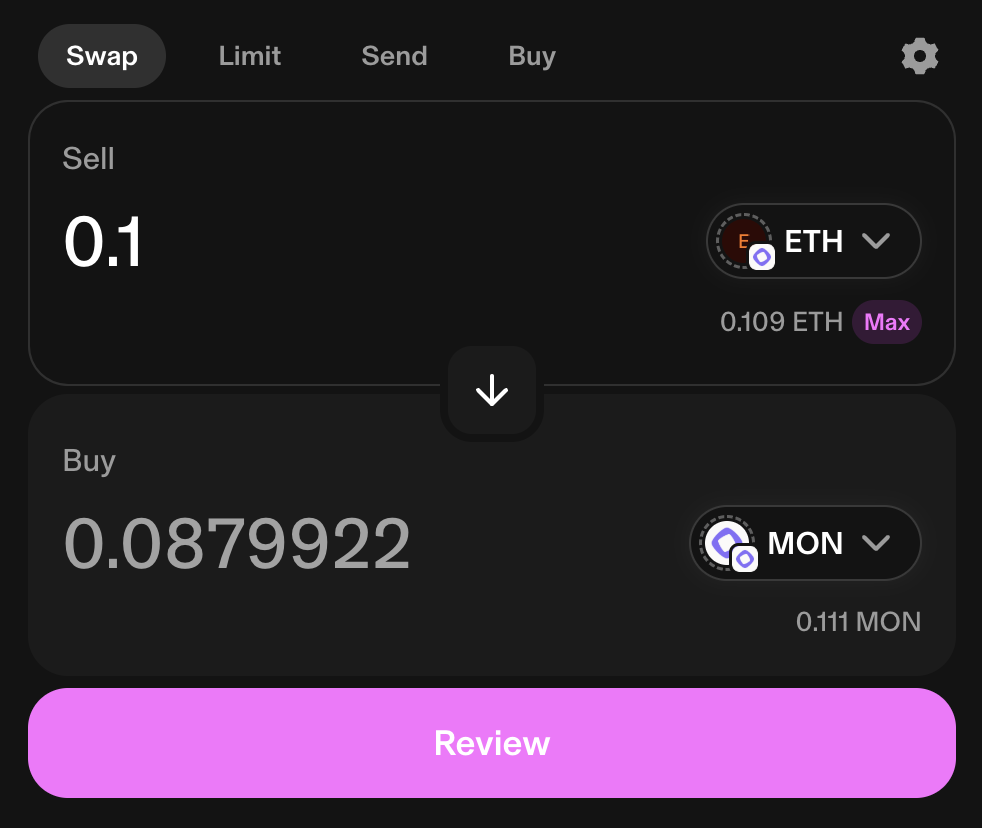 The first token will be our Sepolia ETH that we bridged to Monad, input the contract address and you should see your ETH balance.