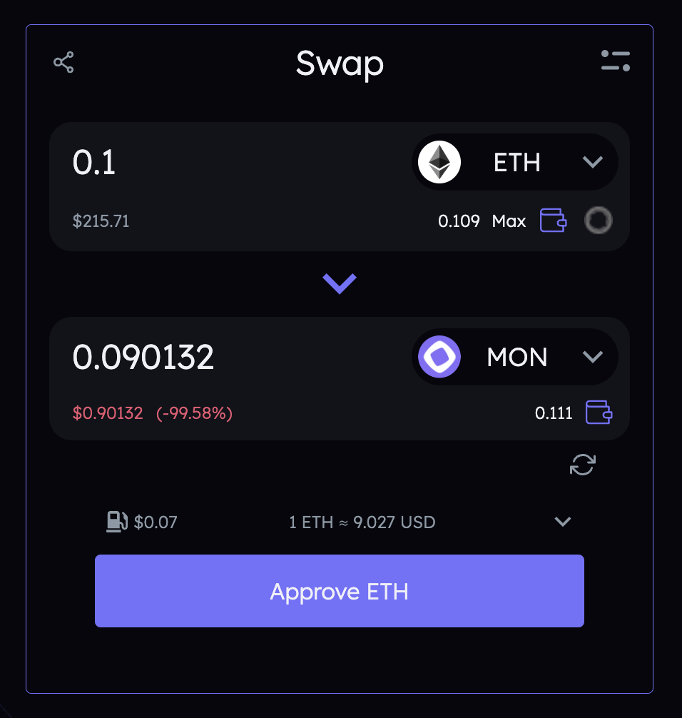 If the exchange rate is too low, you can also try performing the swap here: monad.ambient.finance