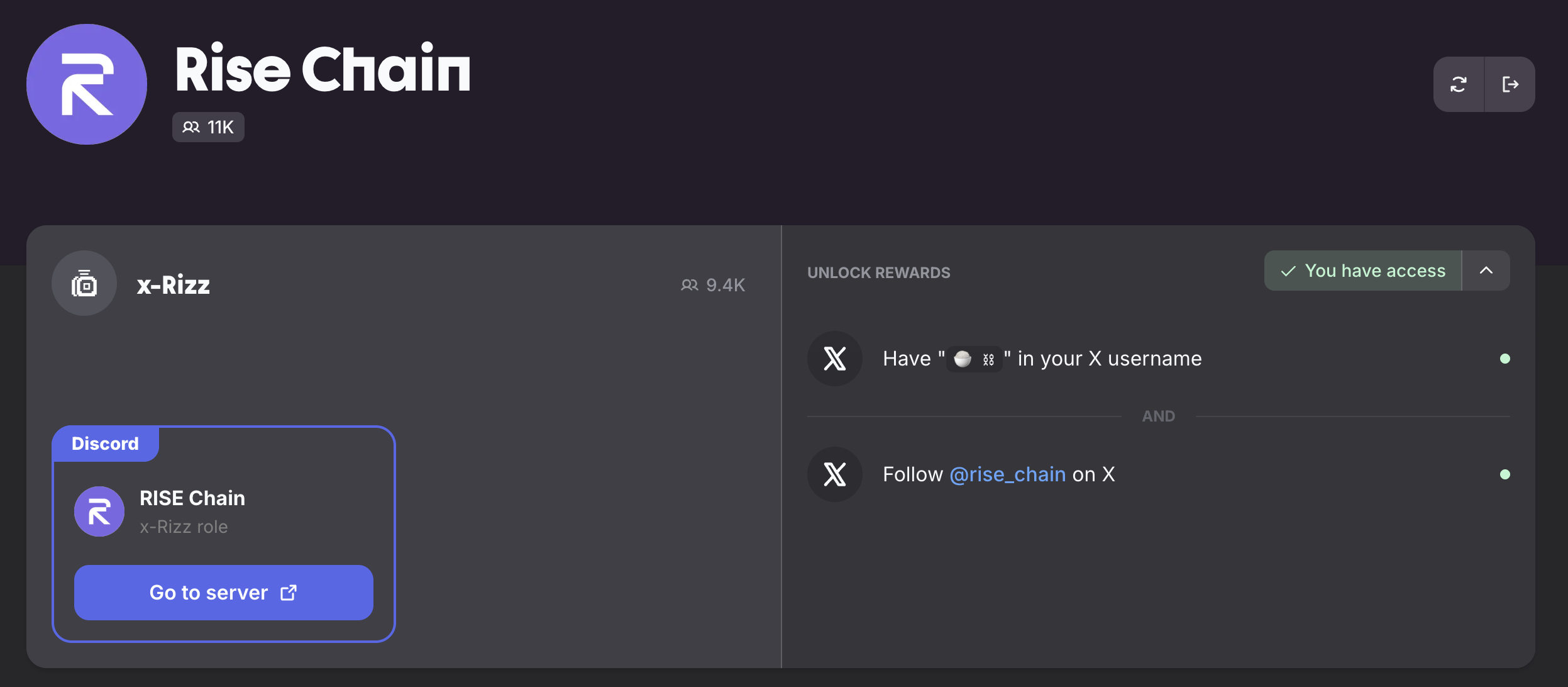 Finally, join the Risechain Guild and connect both your X (formerly Twitter) & Discord accounts.