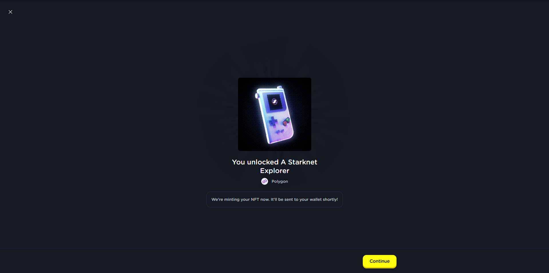 Now you just need to click "Continue" & you'll receive your Explorer NFT!