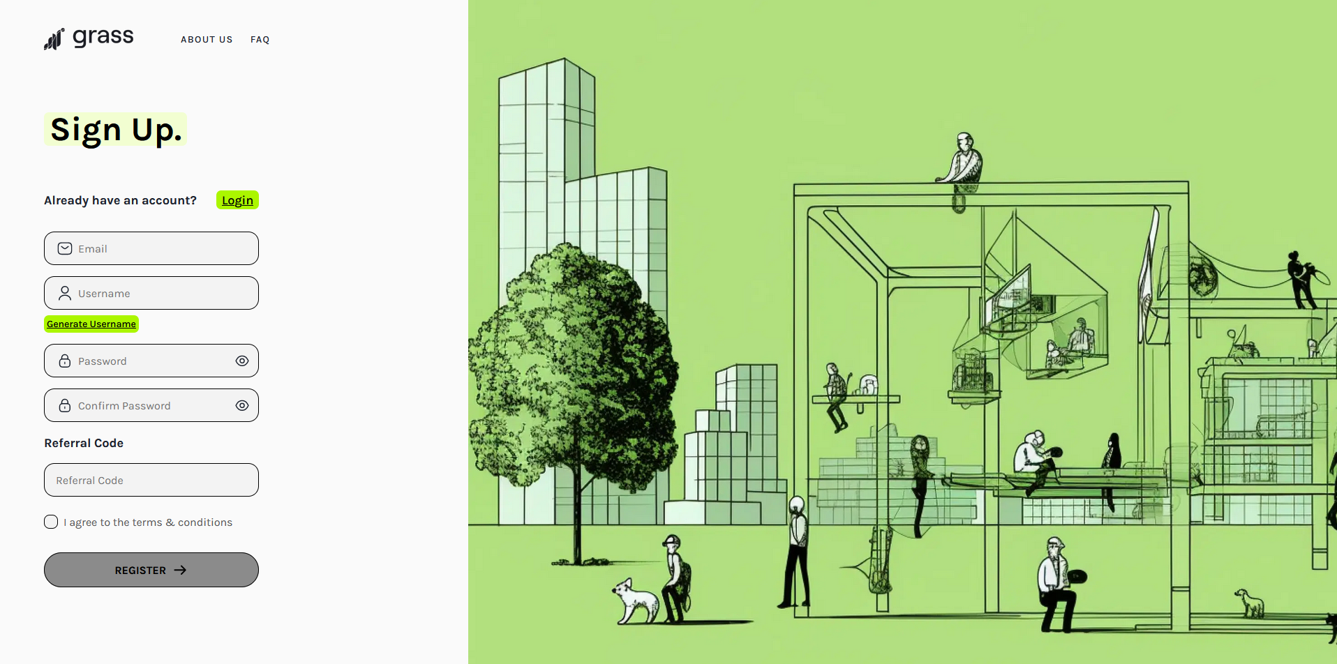 First of all, we need to head over to Grass & signup with an email, username & password.