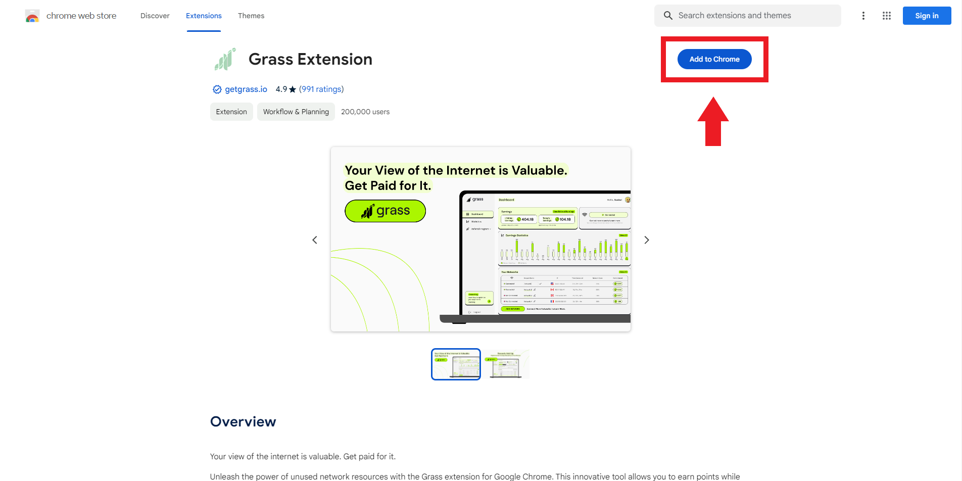 Next, we need to add the Grass Chrome extension & sign in with the account we just created.