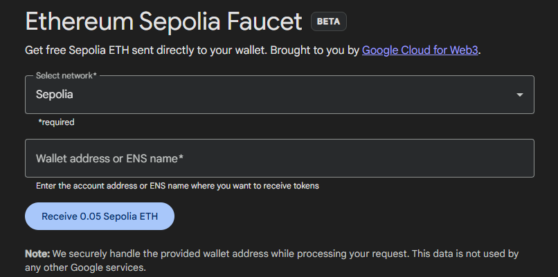 Google Cloud Faucet: cloud.google.com/application/web3/faucet