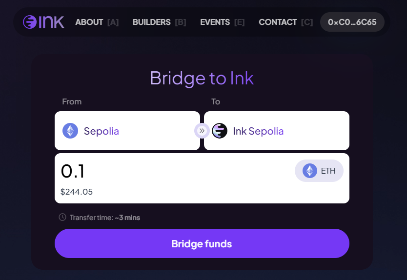 Now just insert any amount of Sepolia ETH and press "Bridge funds".