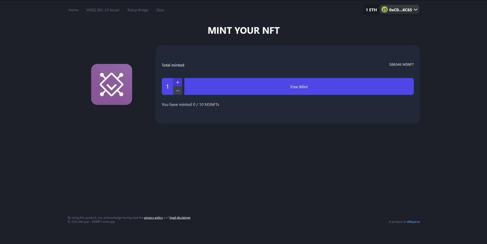Go to testnet-mint.altlayer.io/mint & select "Free Mint".