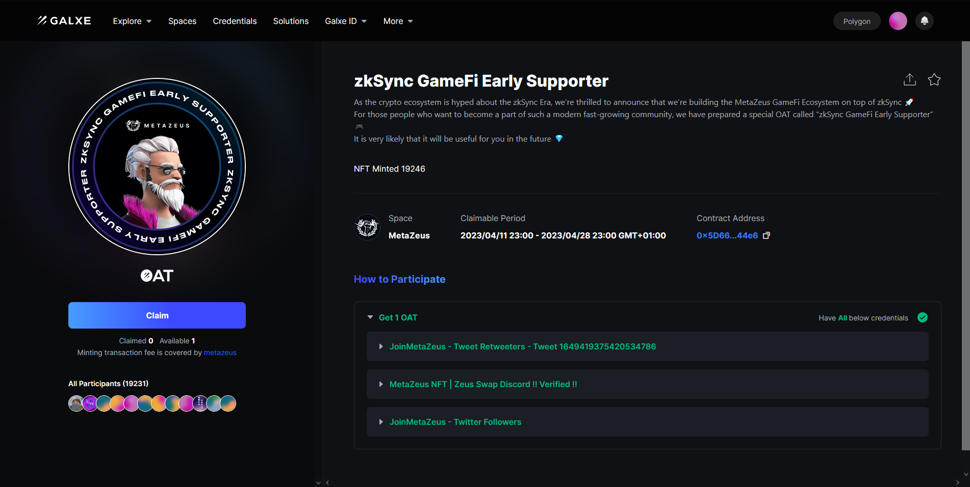 To claim this NFT, we'll need to go to galxe.com/metazeus/campaign & connect our wallet.