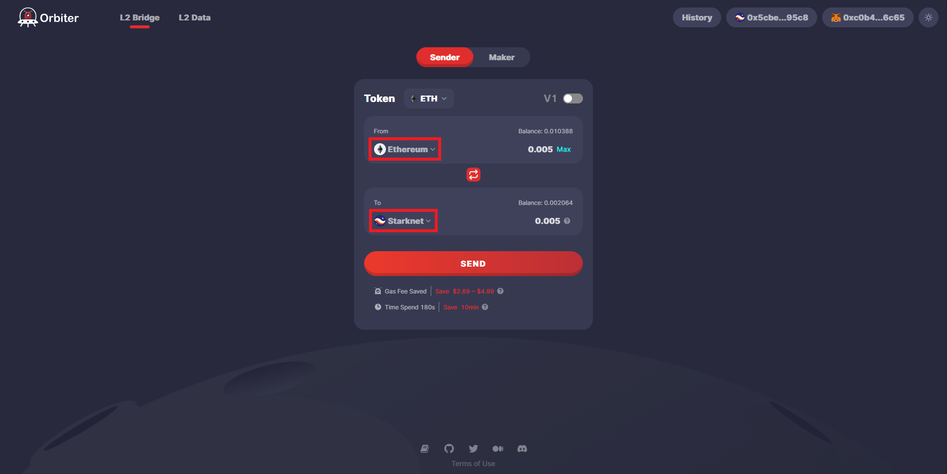 First, we need to bridge some ETH to Starknet, go to orbiter.finance & connect your wallet.