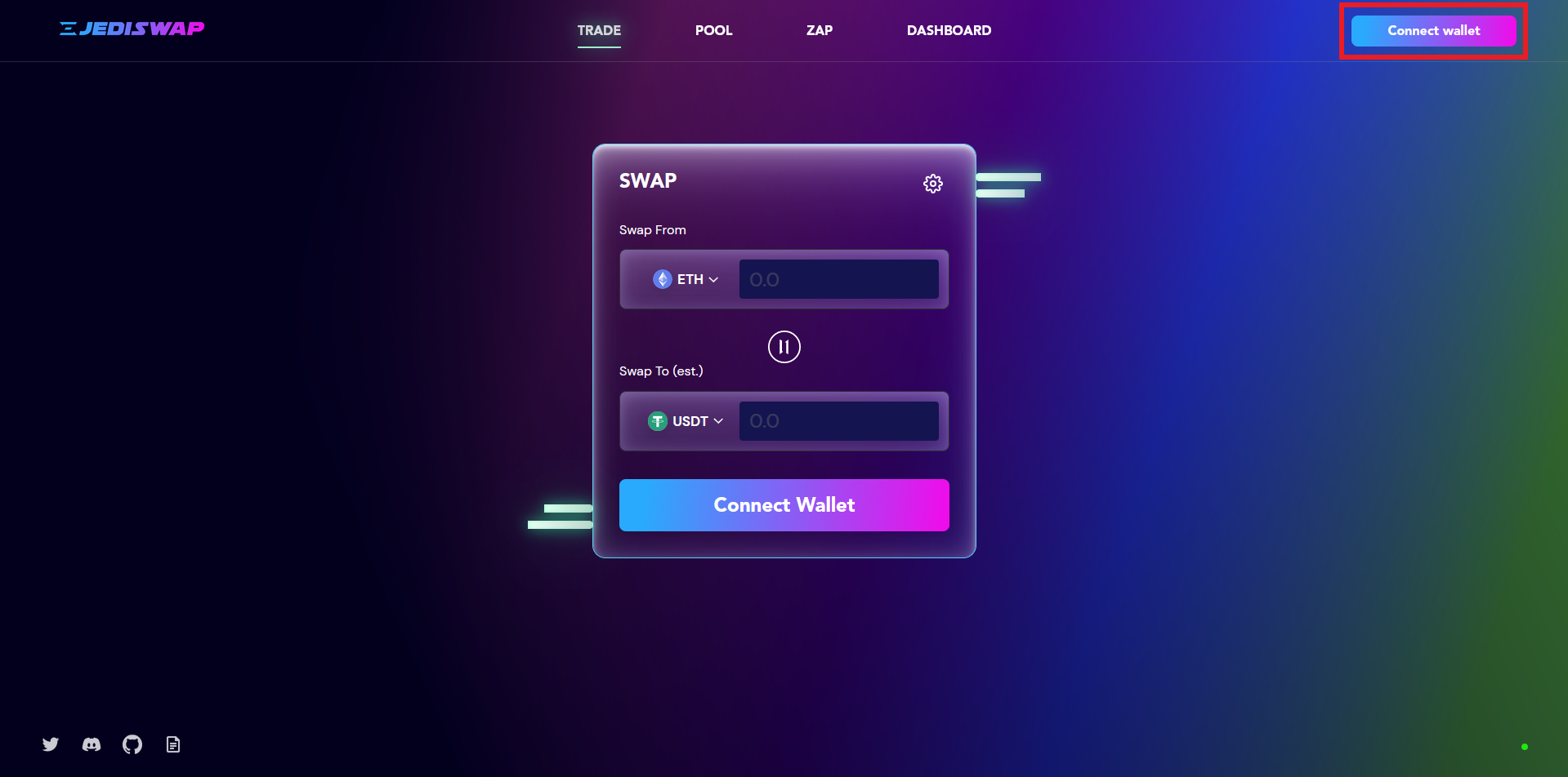 Now, go to app.jediswap.xyz & again, connect your wallet.