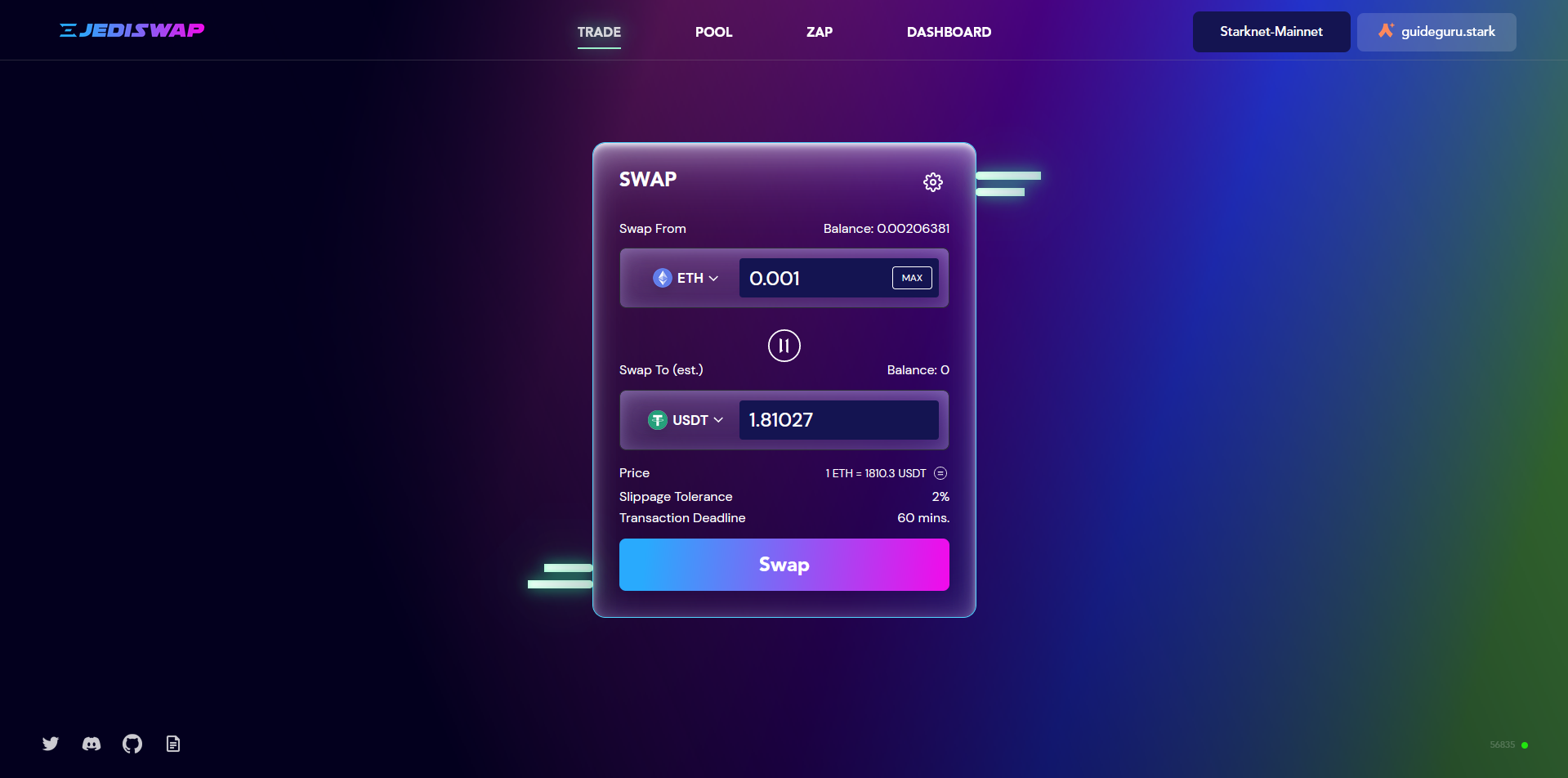 In this guide, I will show you how to interact with JediSwap so that you can earn the week 3 ArgentX Xplorer NFT!