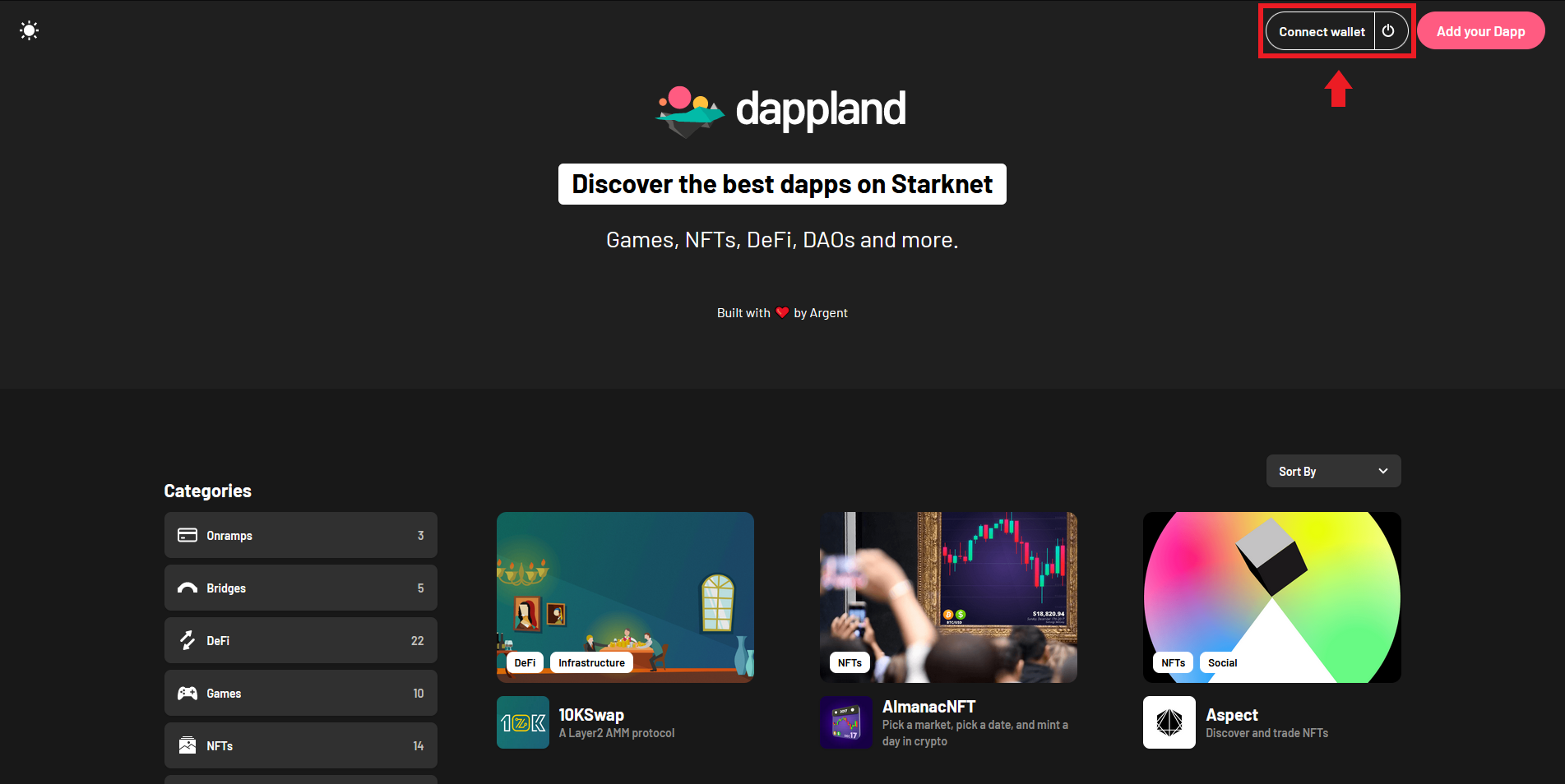 Introducing Dappland, the premier destination for individuals to discover and explore the finest dapps within the StarkNet ecosystem. Within this platform, users can delve into a vast selection of exceptional dapps, spanning from immersive games to innovative NFTs, revolutionary DeFi platforms, thriving DAOs, and more. Dappland provides creators with a dedicated space to showcase their projects and garner greater attention. Embark on an exciting journey into the realm of dapps at Dappland, where the possibilities are limitless.
