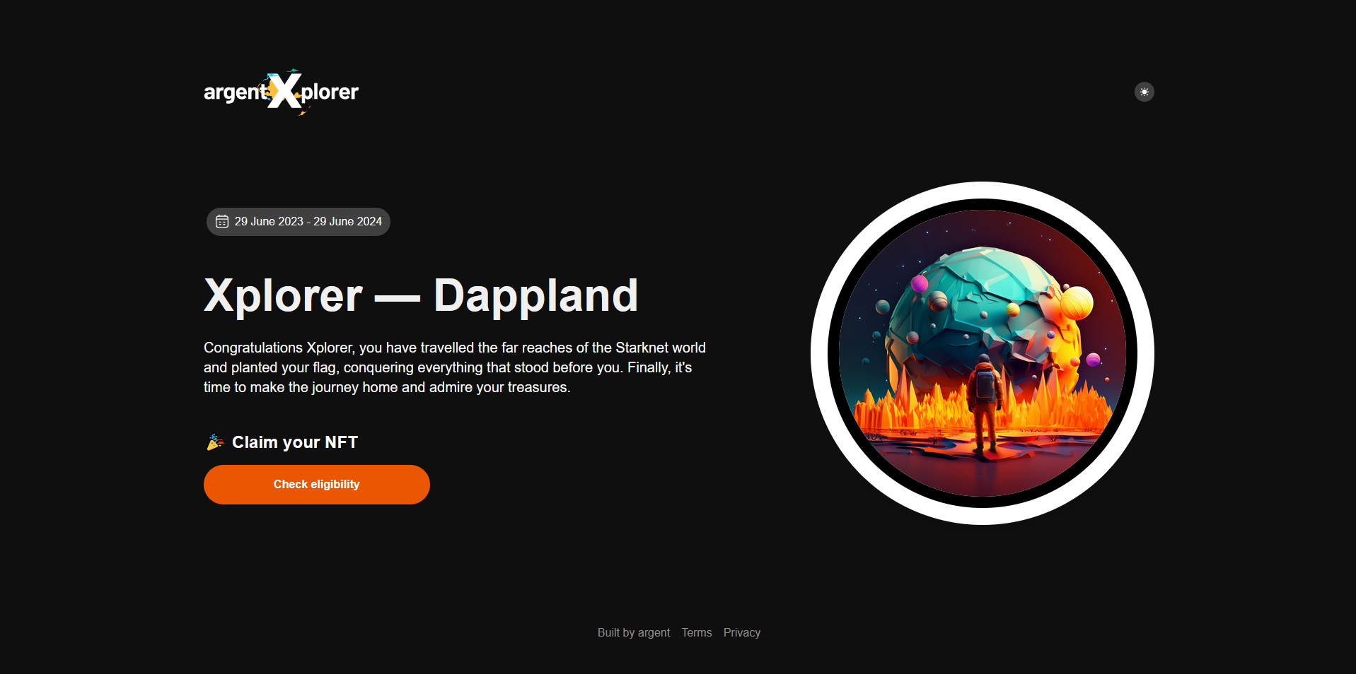 Now just go to xplorer.argent.xyz/claim to claim your NFT!