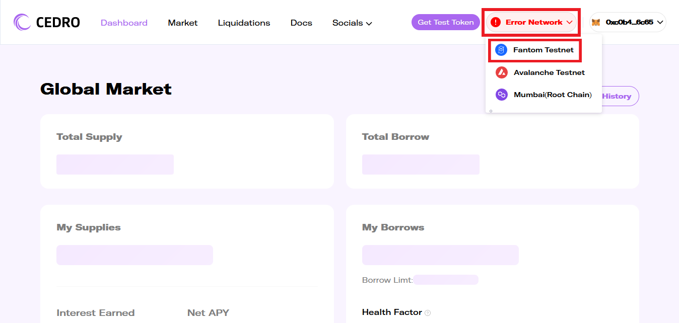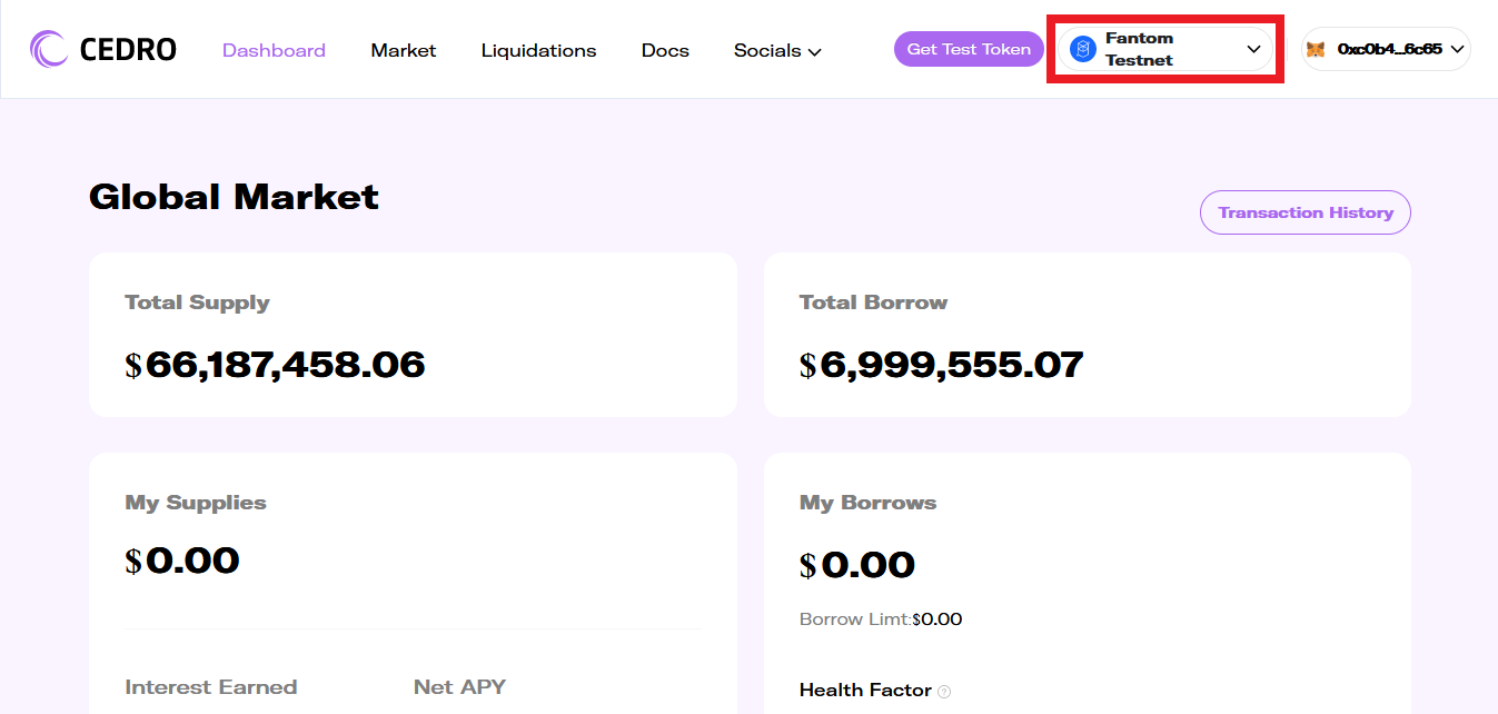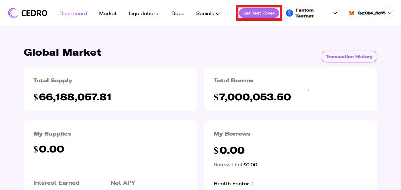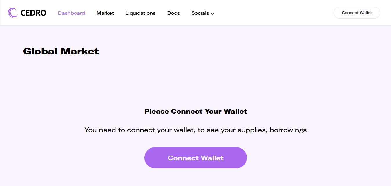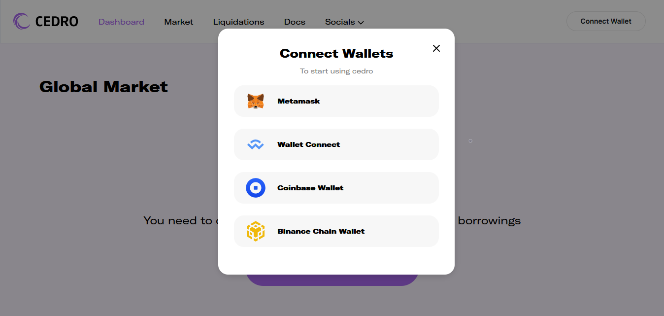 For the first step, we just need to go to the Cedro Finance Dashboard & connect our MetaMask wallet.
