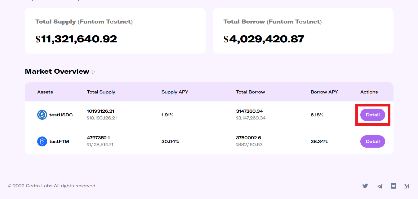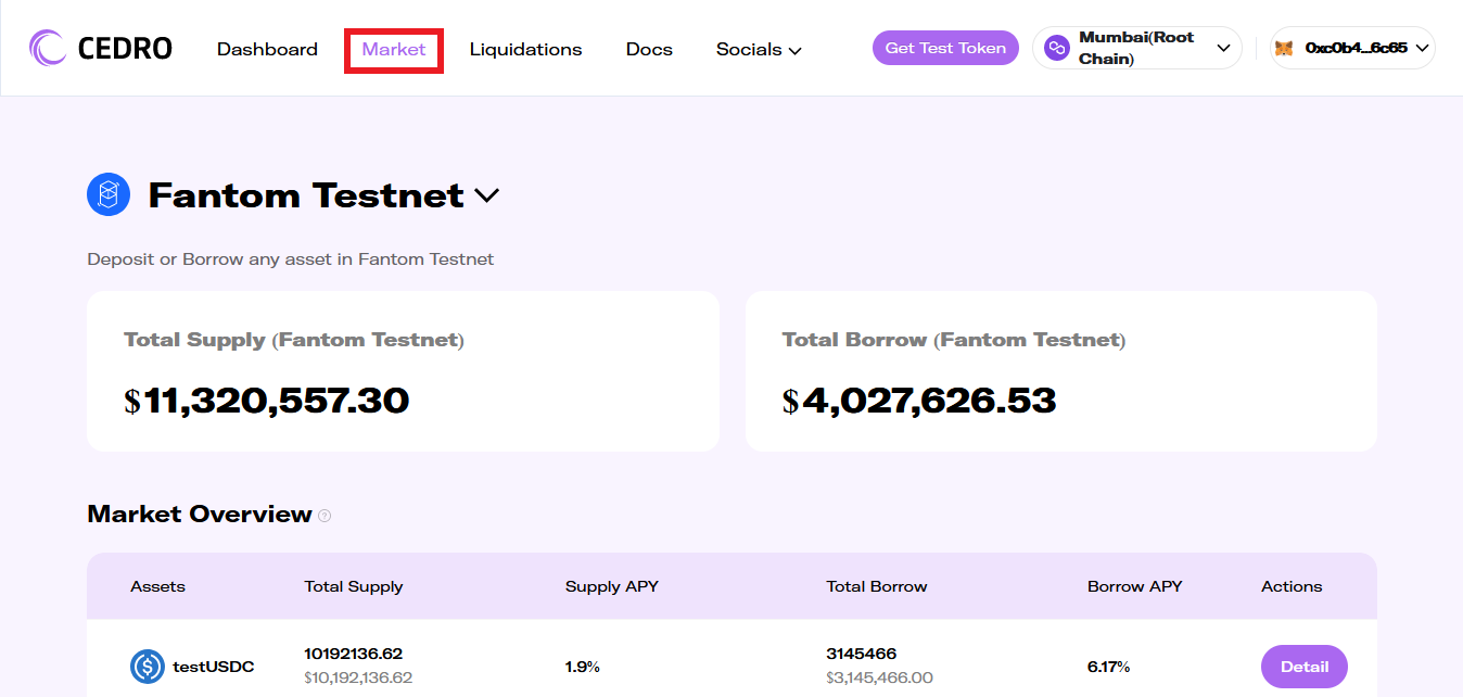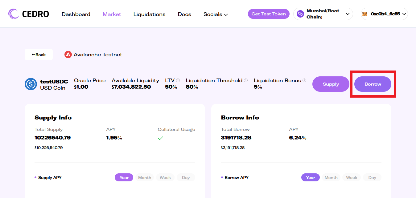 So again, go to the "Market" tab, select "Detail" & press "Borrow", input an amount & hit "Borrow".