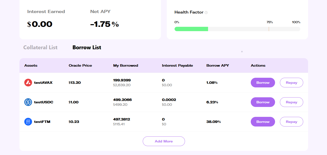 Now go to Dashboard, scroll down & select "Borrow List" to see the list of tokens you are currently borrowing.