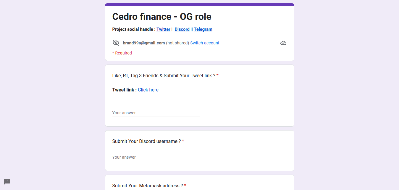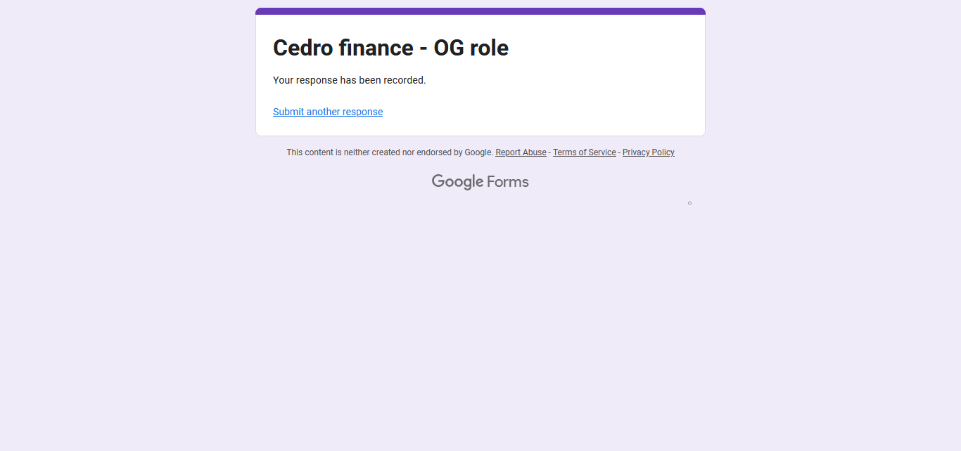 Finally, we just need to join the Cedro Finance Discord Server, verify ourself in the server, & then fill out the Google Docs Form to confirm our participation on the Testnet & to claim the OG Role!