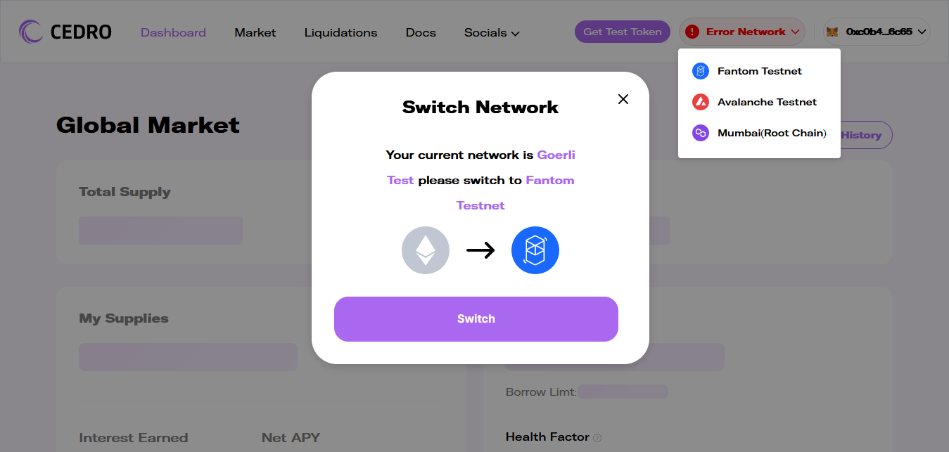 Click on it & select Fantom Testnet, select "Switch" on the pop-up.