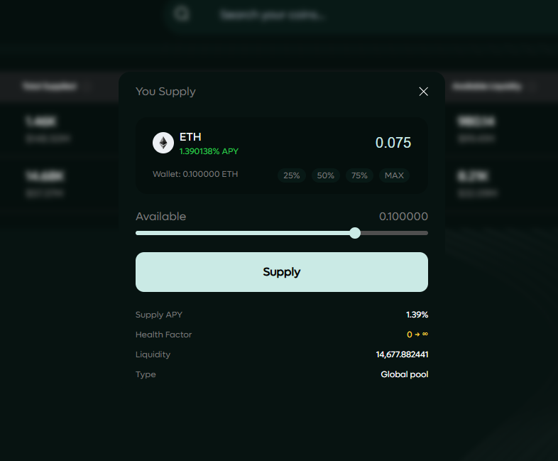 To do this, head over to the Markets page & press "Supply" on ETH.