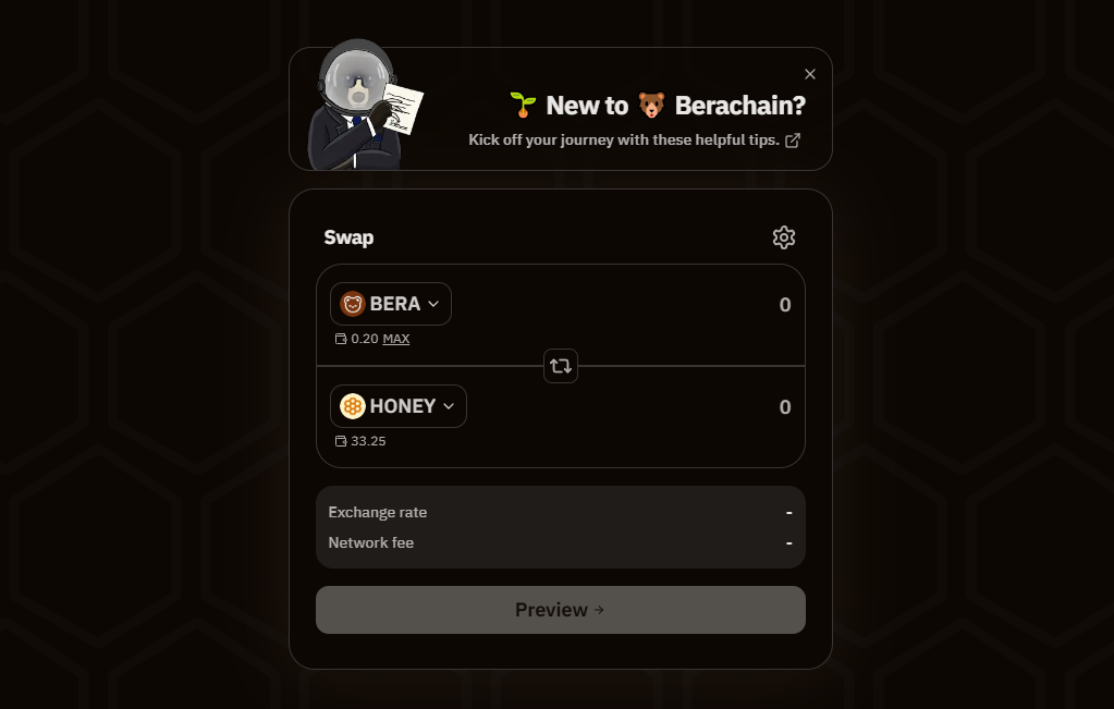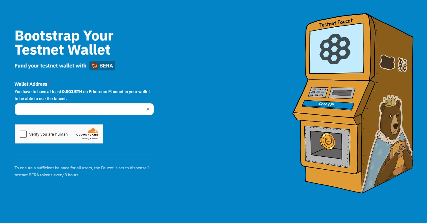 First, we need to claim some BERA from the faucet: bartio.faucet.berachain.com
