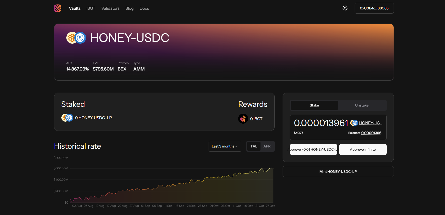 Infrared is focused on developing infrastructure for the Proof of Liquidity (PoL) mechanism introduced by Berachain. Its goal is to enhance value capture by offering user-friendly liquid staking solutions for BGT and BERA, along with node infrastructure and PoL vaults. By building around PoL, Infrared aims to improve the user experience and support the growth of the Berachain ecosystem. Their products, such as iBGT and iBERA, simplify participation in PoL, allowing users to optimize their rewards in BGT and BERA. Additionally, Infrared's offerings create new opportunities within the Berachain ecosystem by making BGT and staked BERA more interoperable.