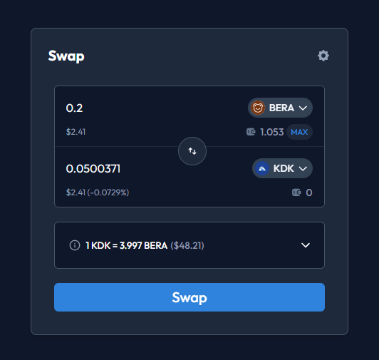 Now we have some test BERA, we can head over to: app.kodiak.finance/#/swap & connect wallet.