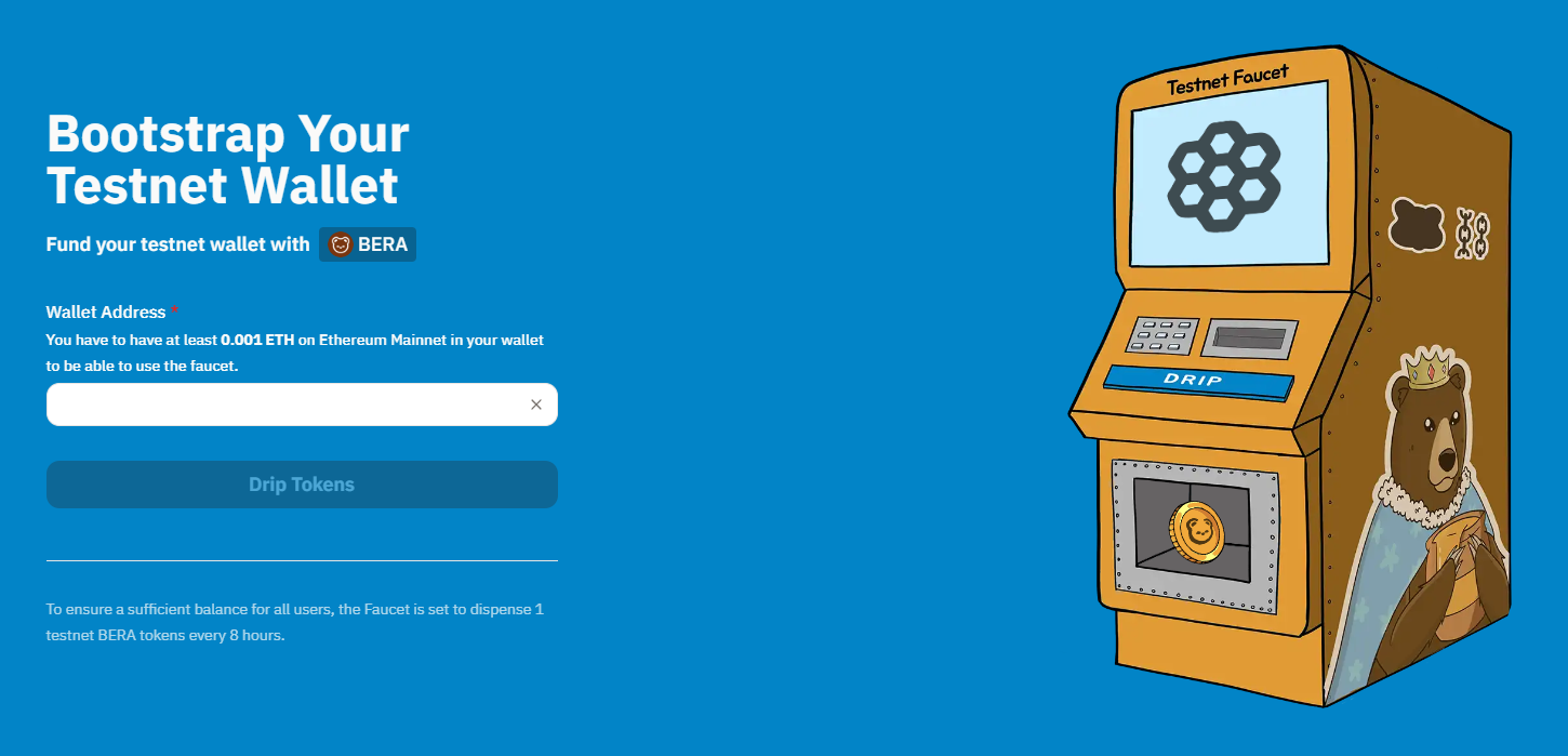 First, let's claim some test BERA from the official faucet: bartio.faucet.berachain.com