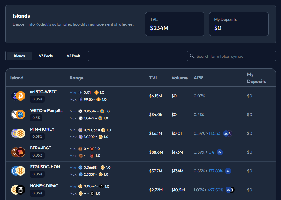 Head over to: app.kodiak.finance/#/liquidity/islands & connect your wallet.