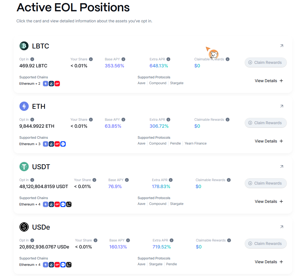 Now if you go to the reward dashboard: testnet.mitosis.org/EOL-vault/reward you can see your active positions.