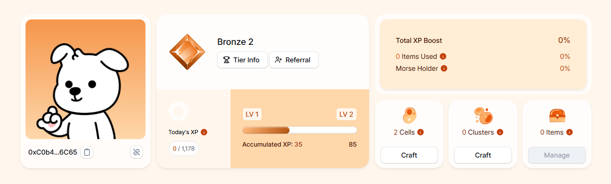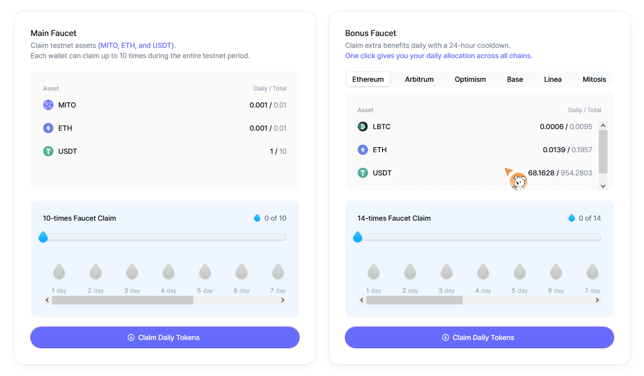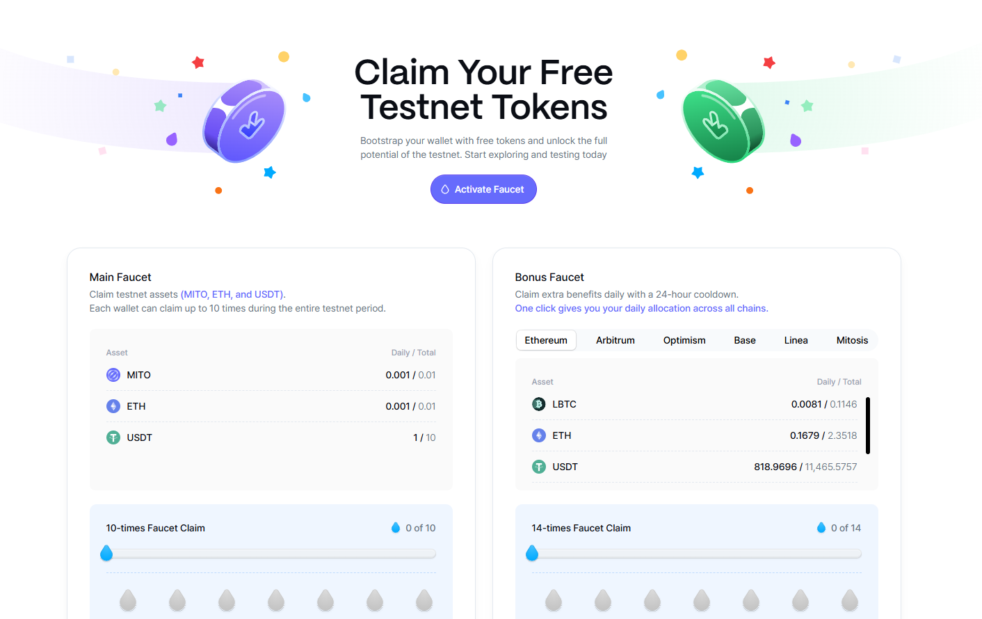 Finally, head over to your profile page: testnet.mitosis.org/mypage & now you should have some Cells available.