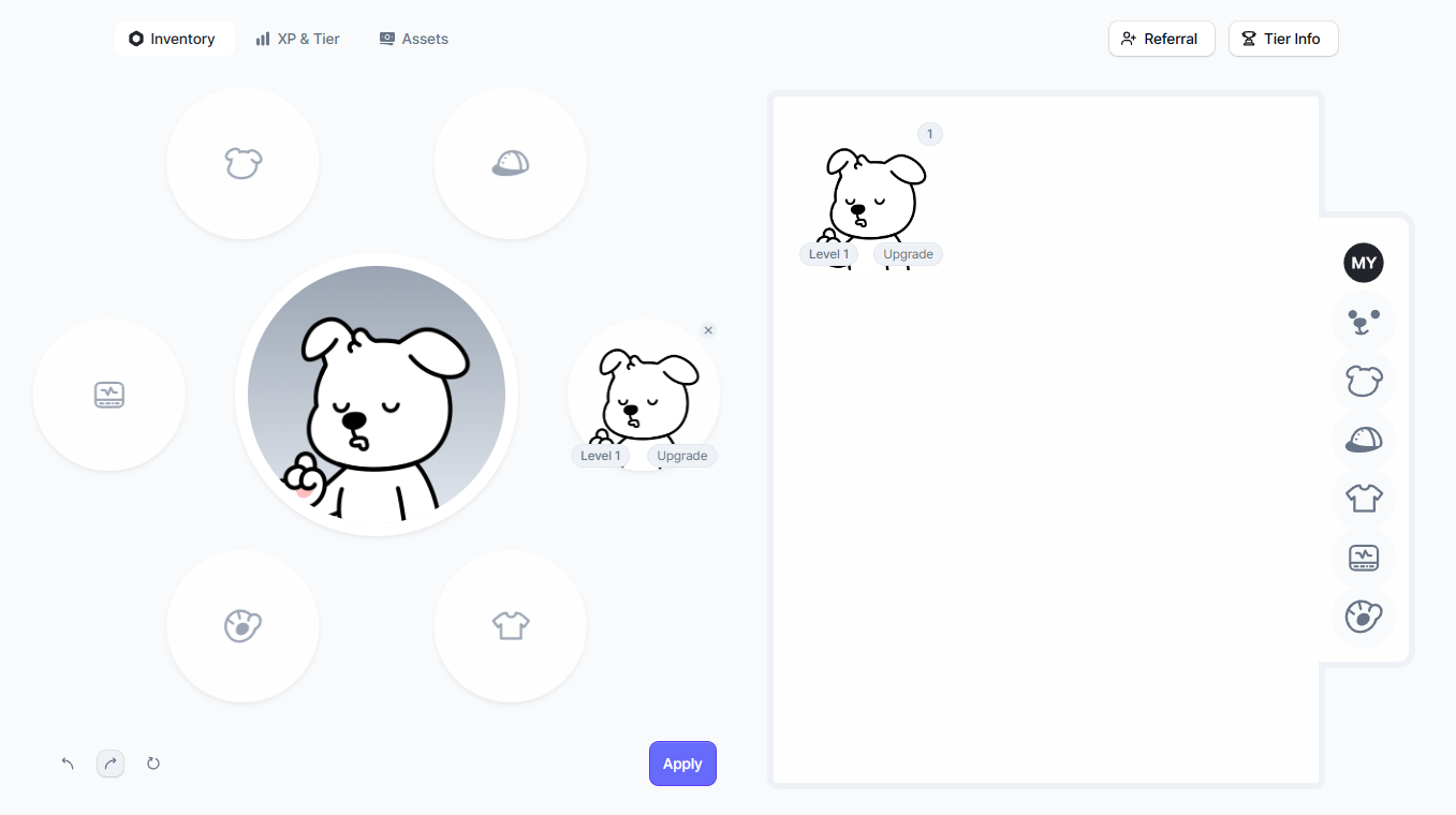 Once you have created an item, you can scroll down and equip it, then hit "Apply" to save changes.