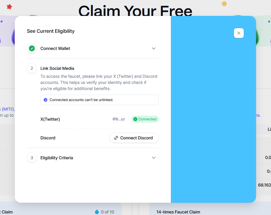 Press "Activate Faucet", then proceed to connect your X & Discord accounts to register.