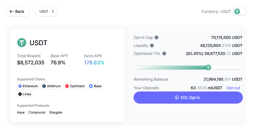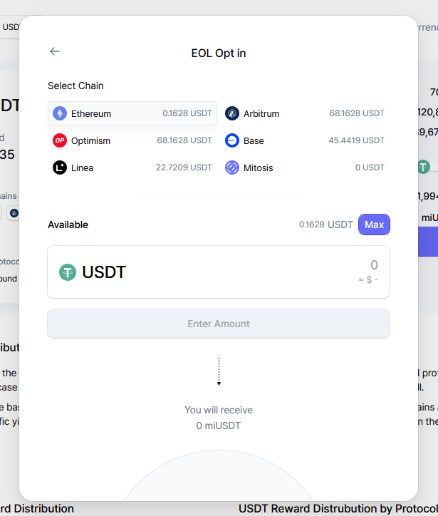 - EOL Mechanism: LPs deposit their assets into Mitosis Vaults and receive representative tokens on the Mitosis chain. By converting these into miAssets, LPs participate in a shared liquidity pool that generates cross-chain yield.