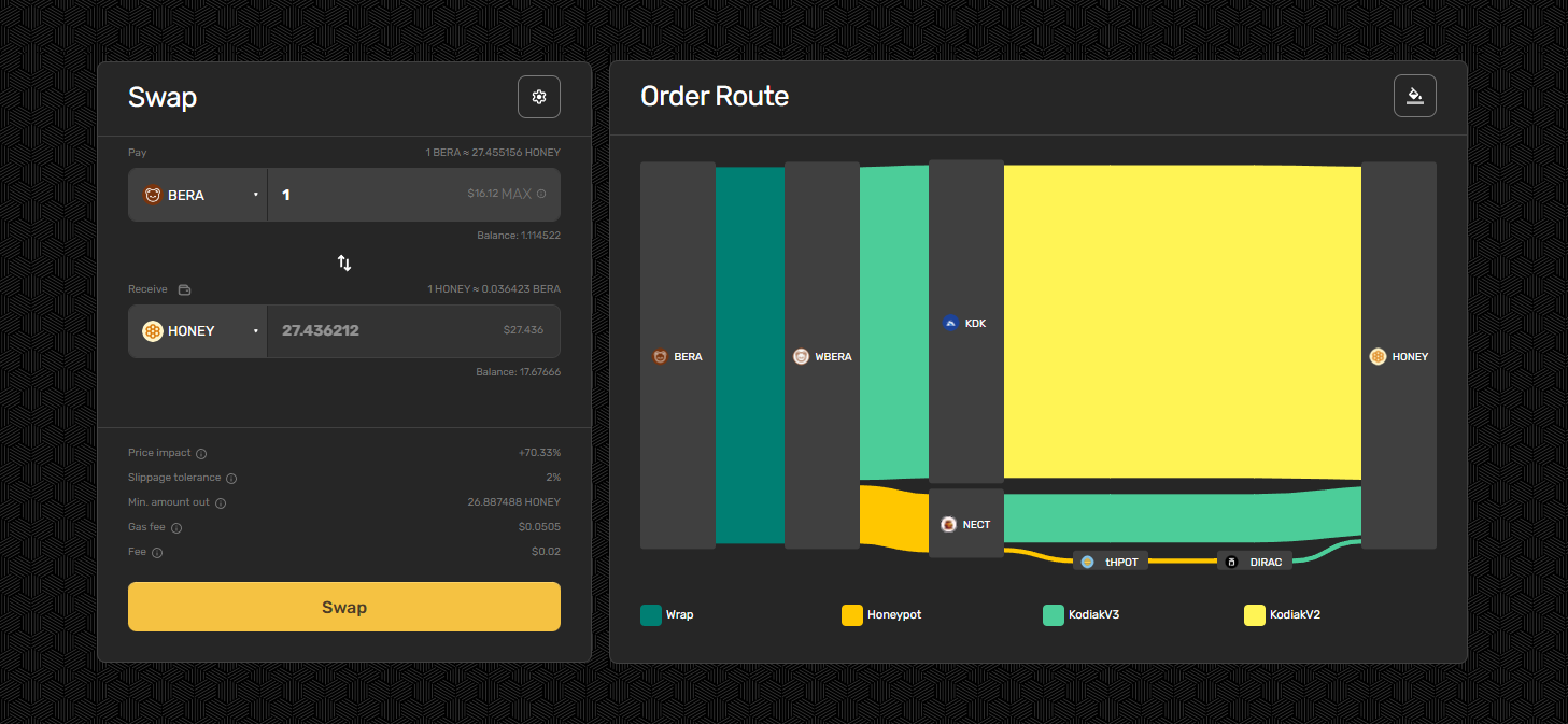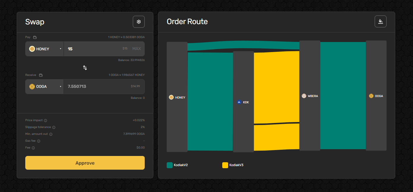 Ooga Booga is the native liquidity aggregator for Berachain, a blockchain aiming to be the most capital-efficient Layer 1 through its unique Proof of Liquidity consensus model. Since liquidity in blockchains is typically spread across various platforms, Ooga Booga's role is to centralize and streamline swap execution within the ecosystem, targeting the entire user base of the chain.