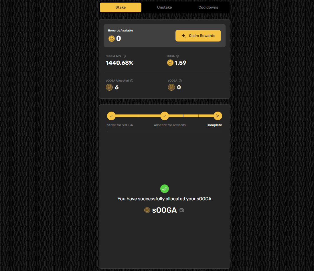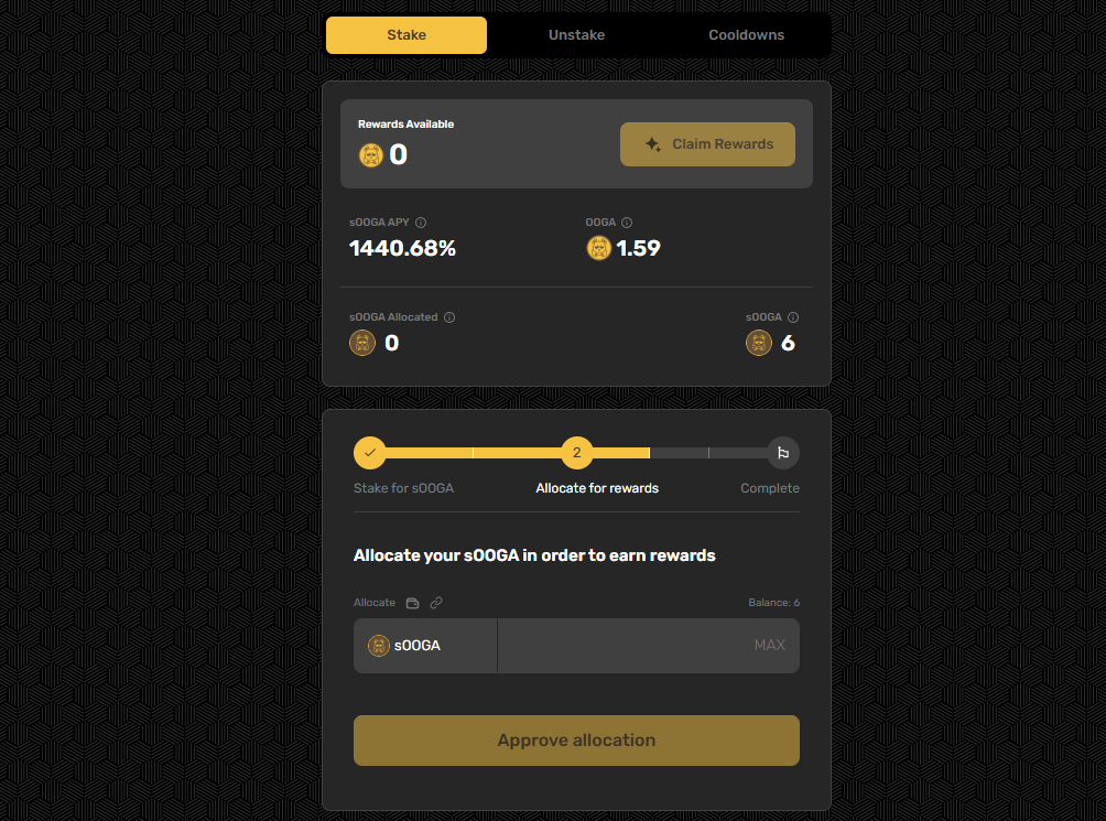 So insert any amount of sOOGA, hit "Approve Token", then press "Approve Allocation".