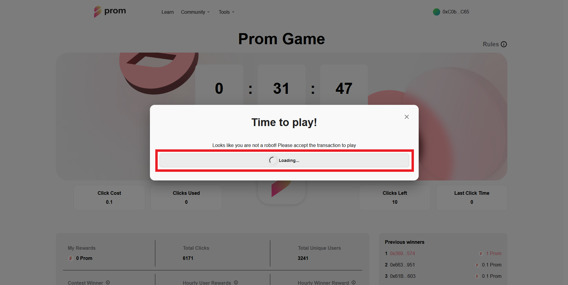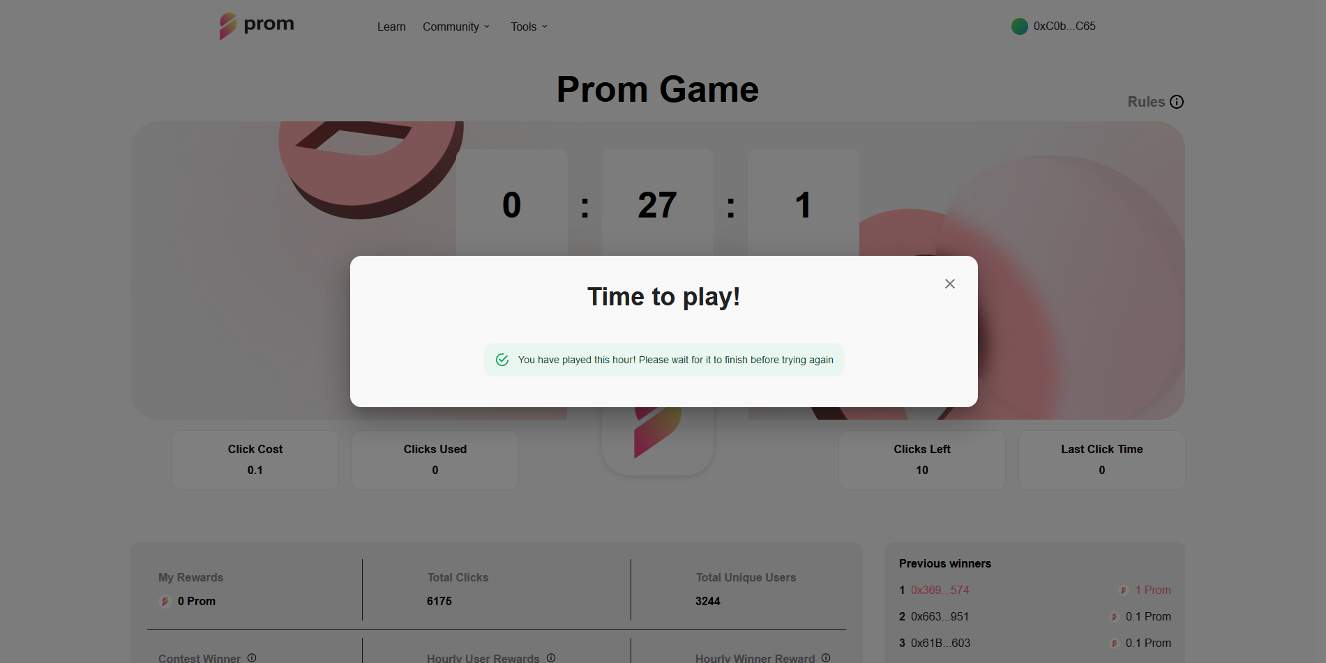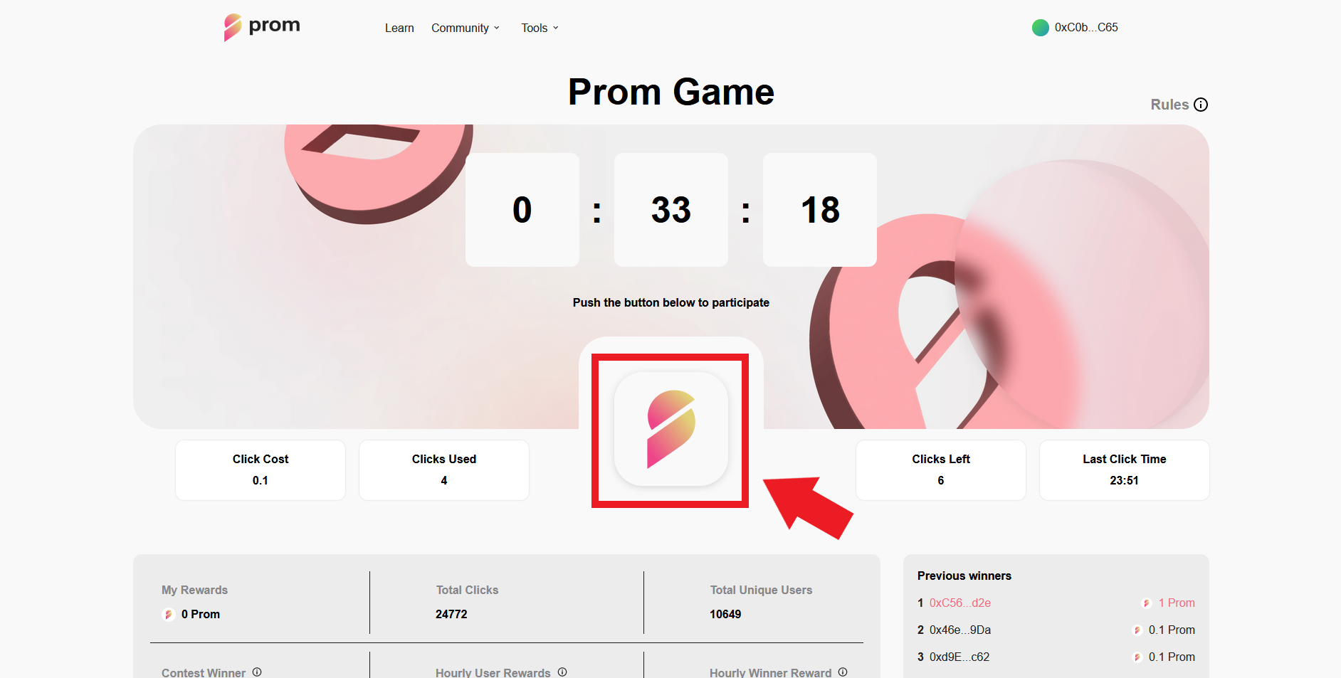 You should see some $PROM tokens in your wallet shortly. Let's test the "Button Game".