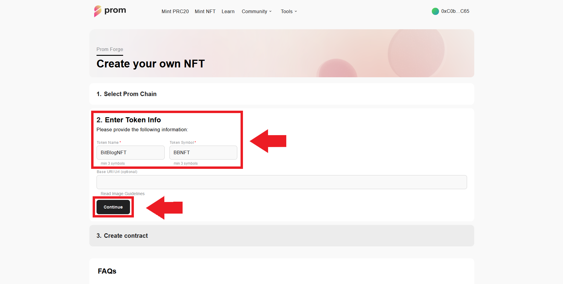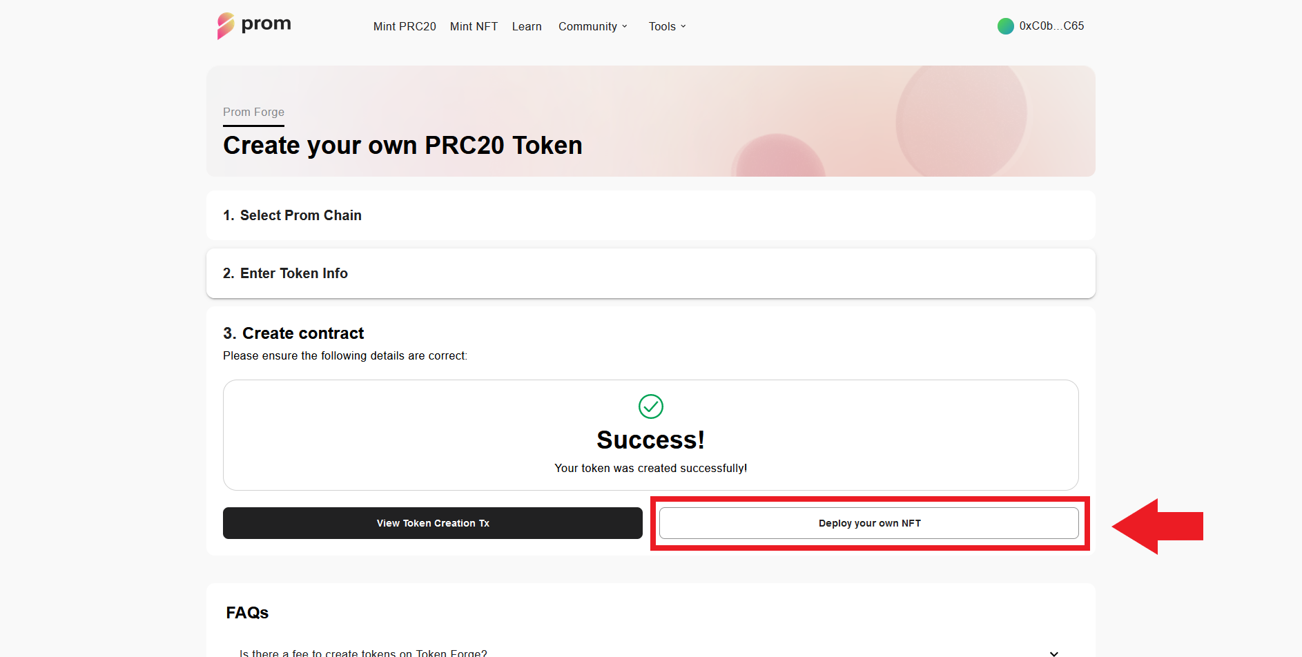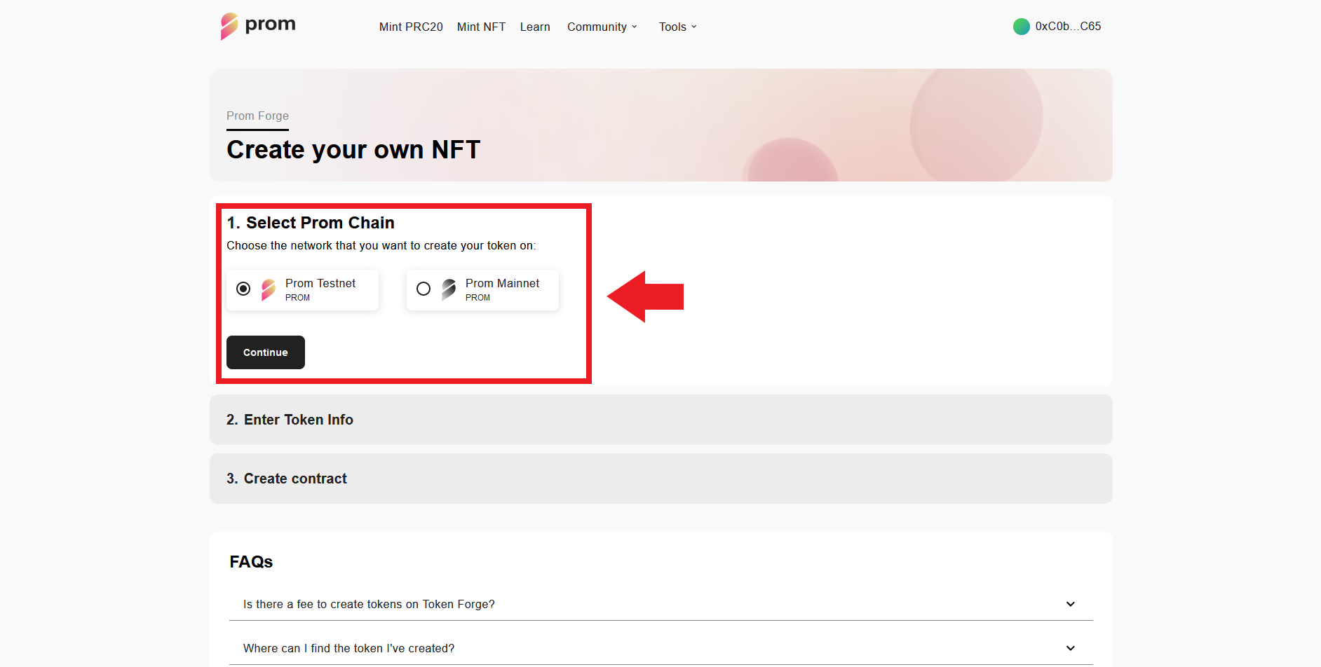 In this guide, we'll provide a step-by-step walkthrough for interacting with the Prom Testnet. This includes tasks such as deploying a token contract, setting up an NFT contract, and additional functionalities.