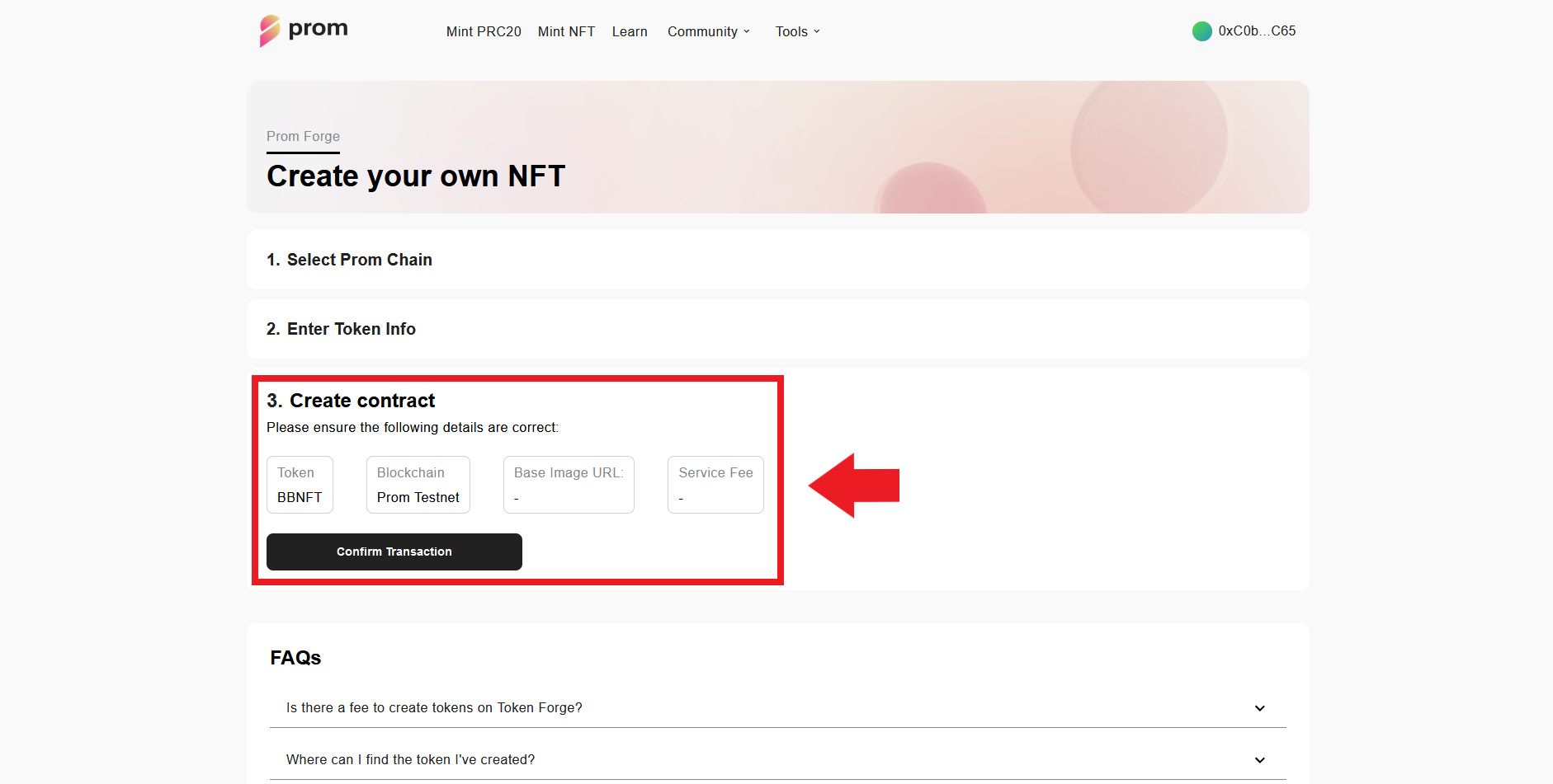Select "Deploy your own NFT" and again go through the steps and finally hit "Confirm Transaction".