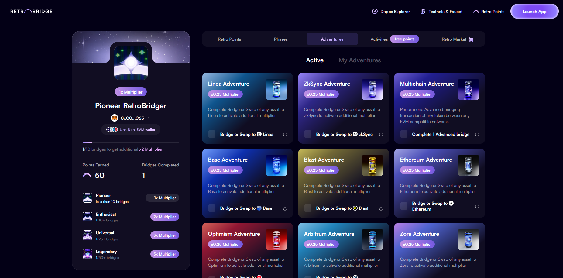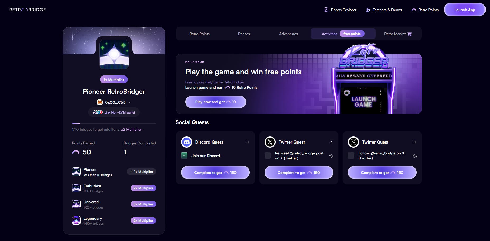 Now let's go to the Activities tab: retrobridge.io/quests/activities and earn some free points!