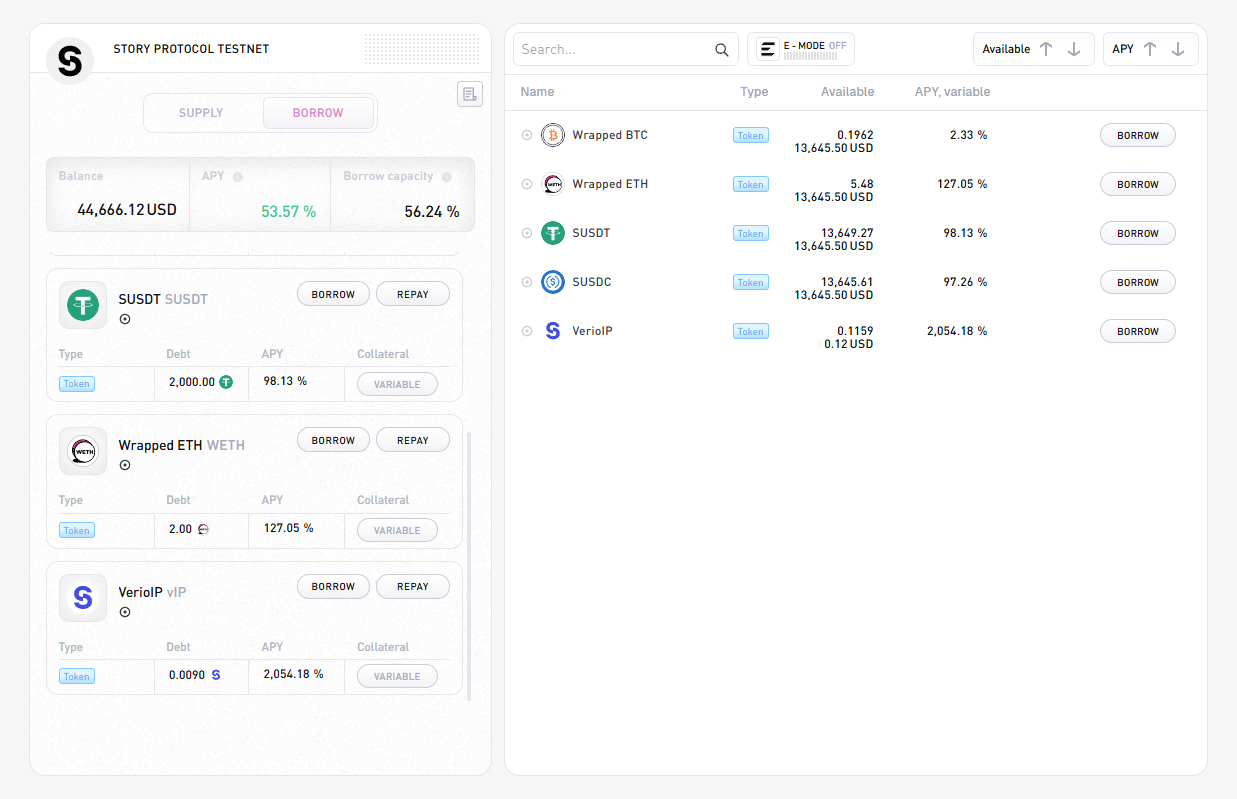 Now go to the Borrow tab & borrow a small amount of each asset.
