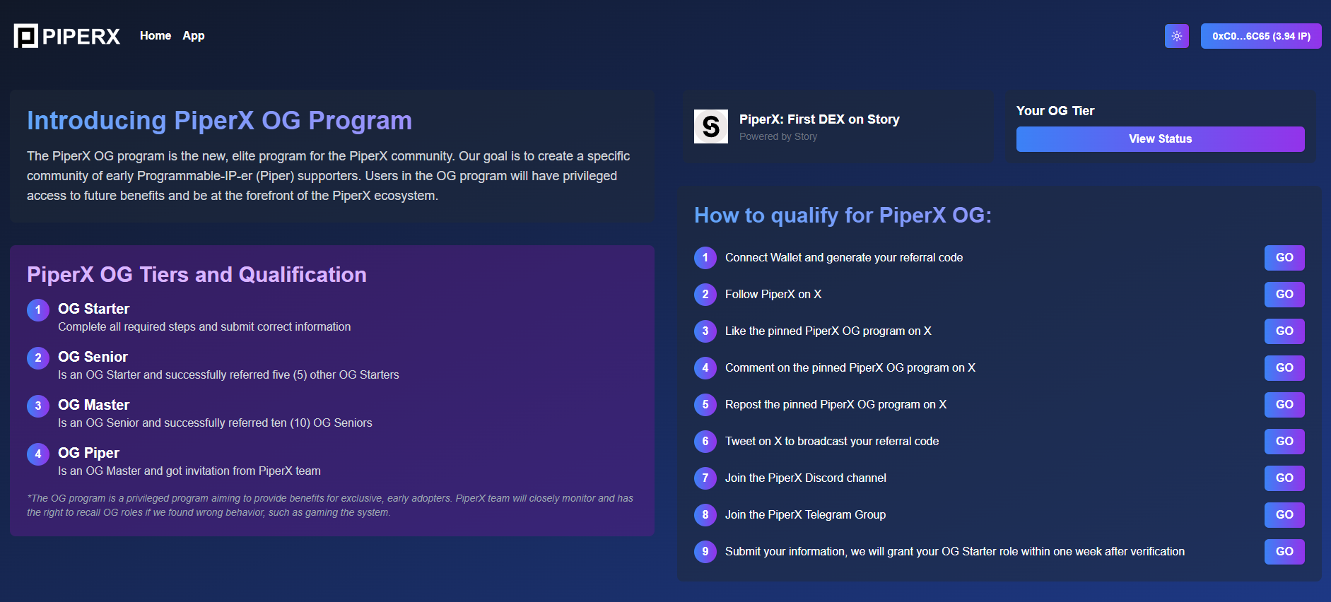 We can also acquire OG status by completing the tasks here: og.piperx.xyz