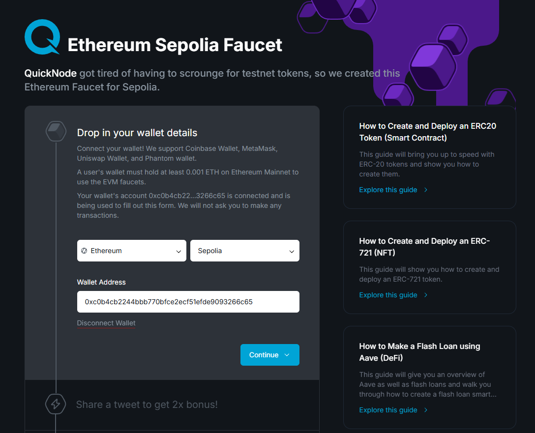 Next, we need to claim some test ETH on Sepolia, Arbitrum Sepolia, Blast Sepolia & Mode Sepolia.
