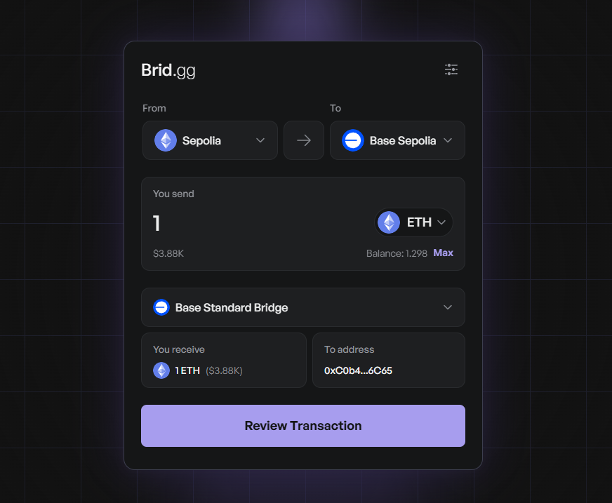 Now bridge some ETH from Sepolia to Base Sepolia.