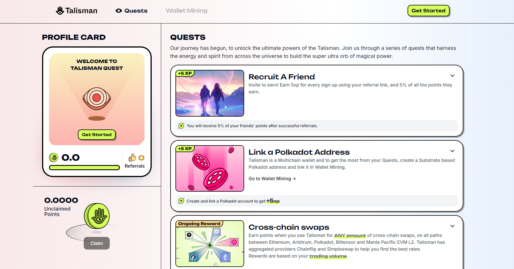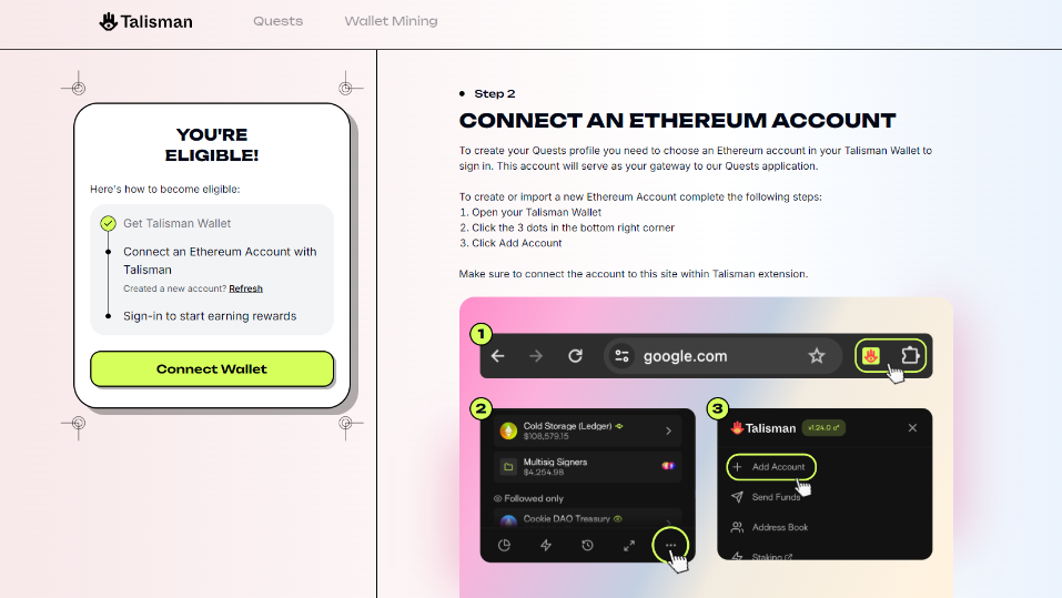 Next, we'll head over to the Talisman Quests website: quest.talisman.xyz/quests
