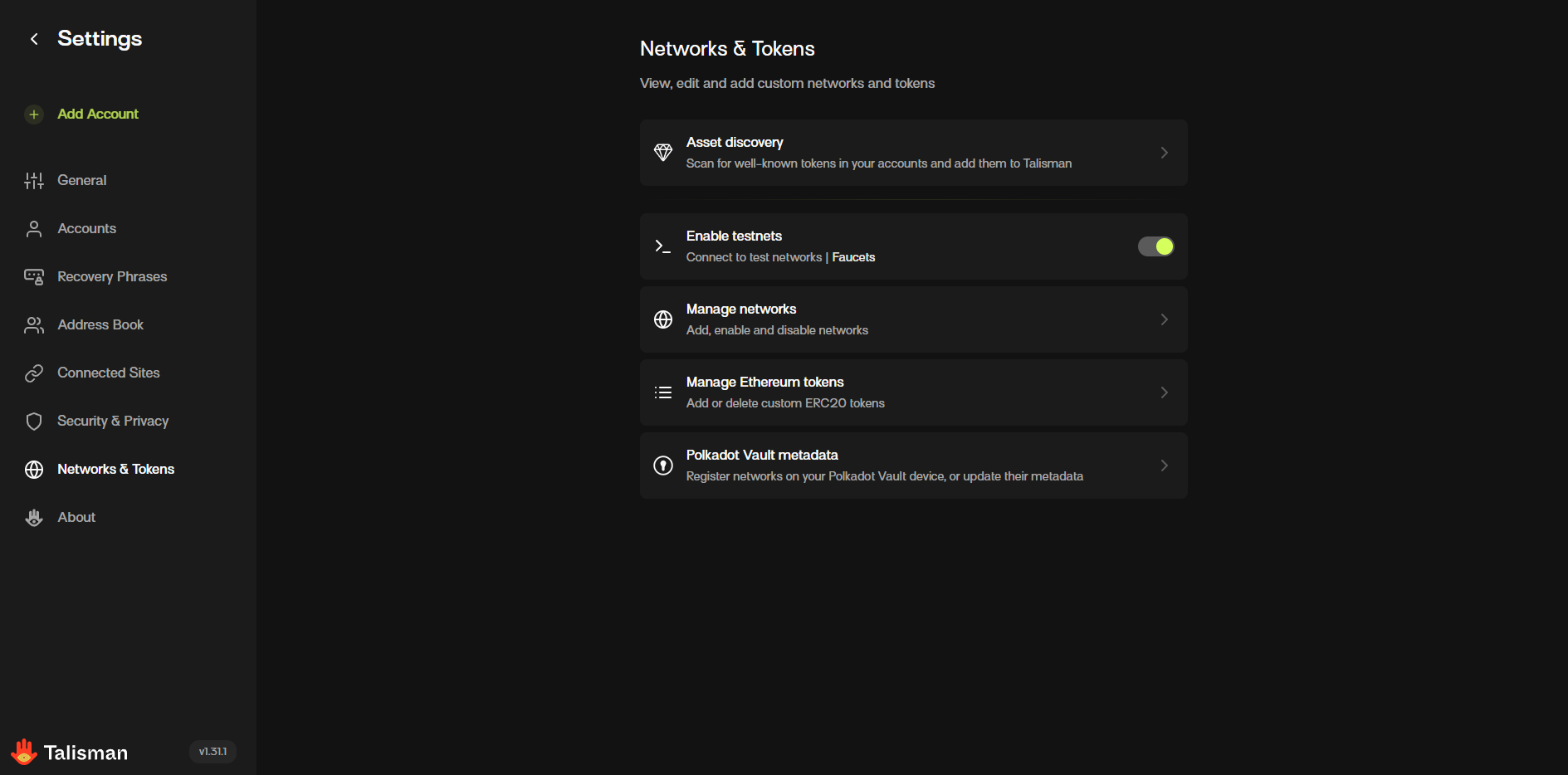 In Talisman, go into Settings & turn on the switch labelled "Enable testnets".