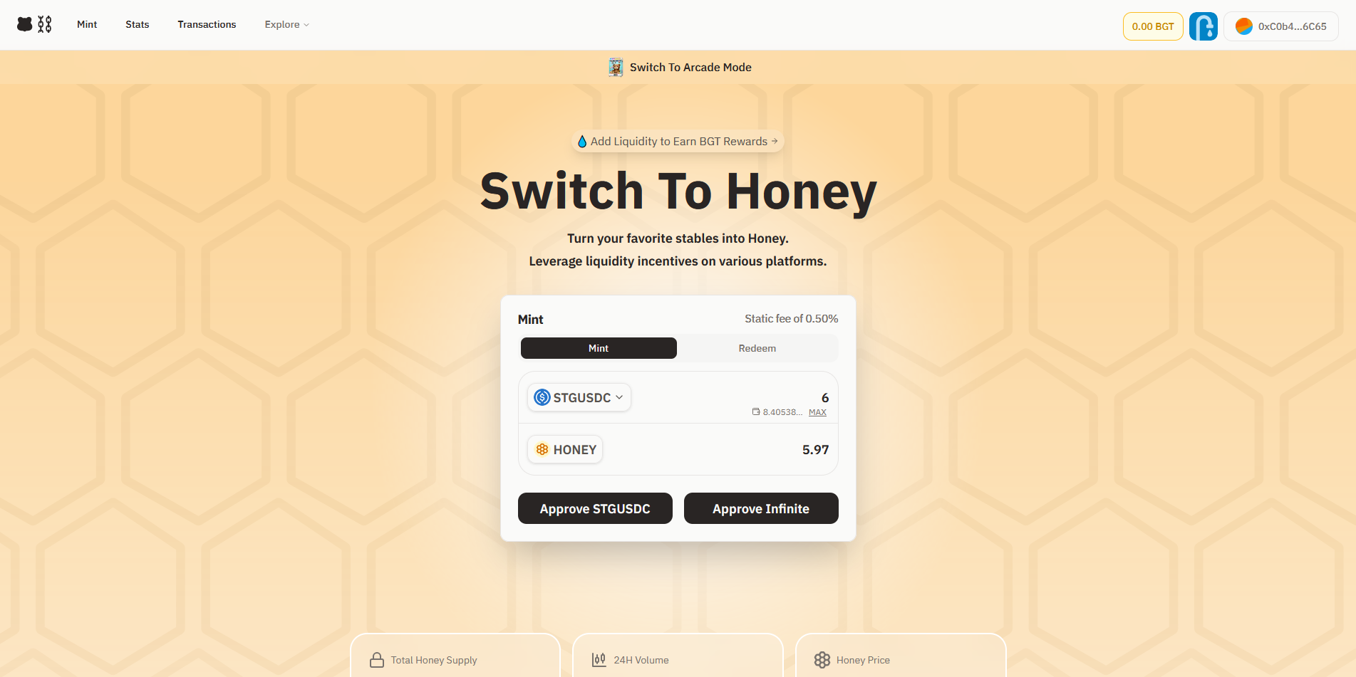 Next, we can mint HONEY using the STGUSDC tokens we received in the previous step!