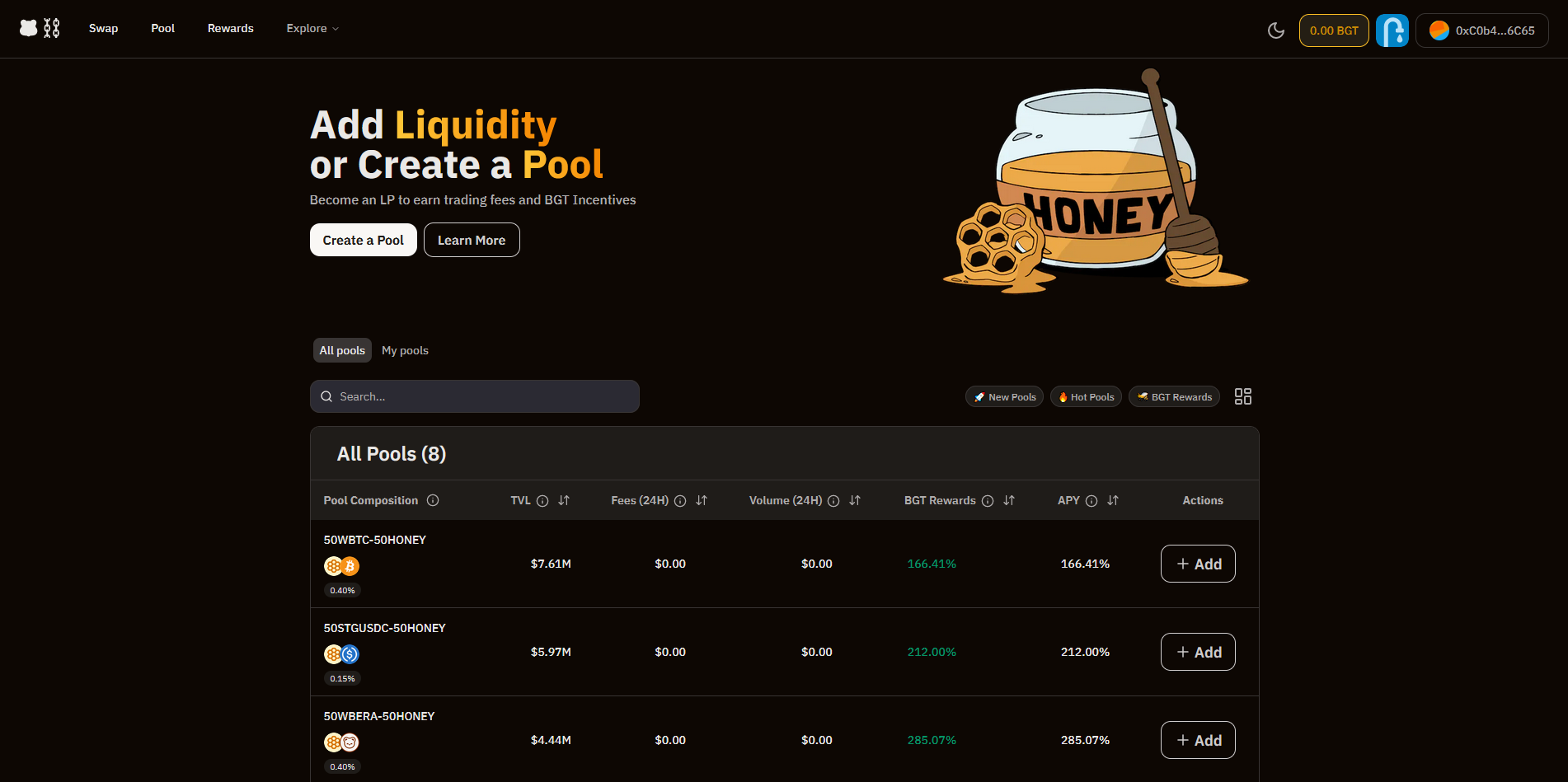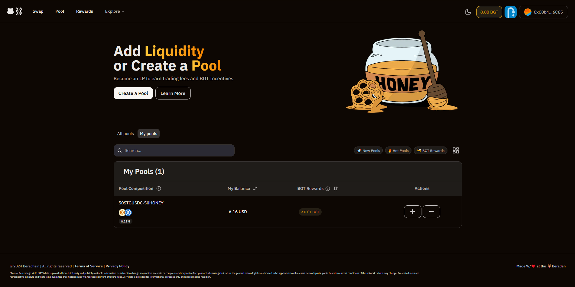 Now let's earn BGT tokens by providing liquidity using our STGUSDC & HONEY!