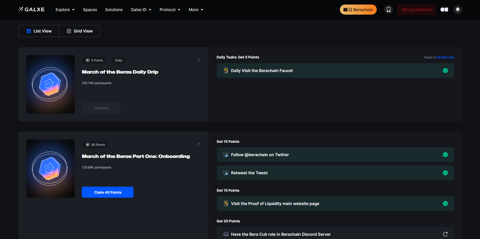 Finally, let's complete some quick tasks on the BeraChain Galxe Campaign & claim some points.