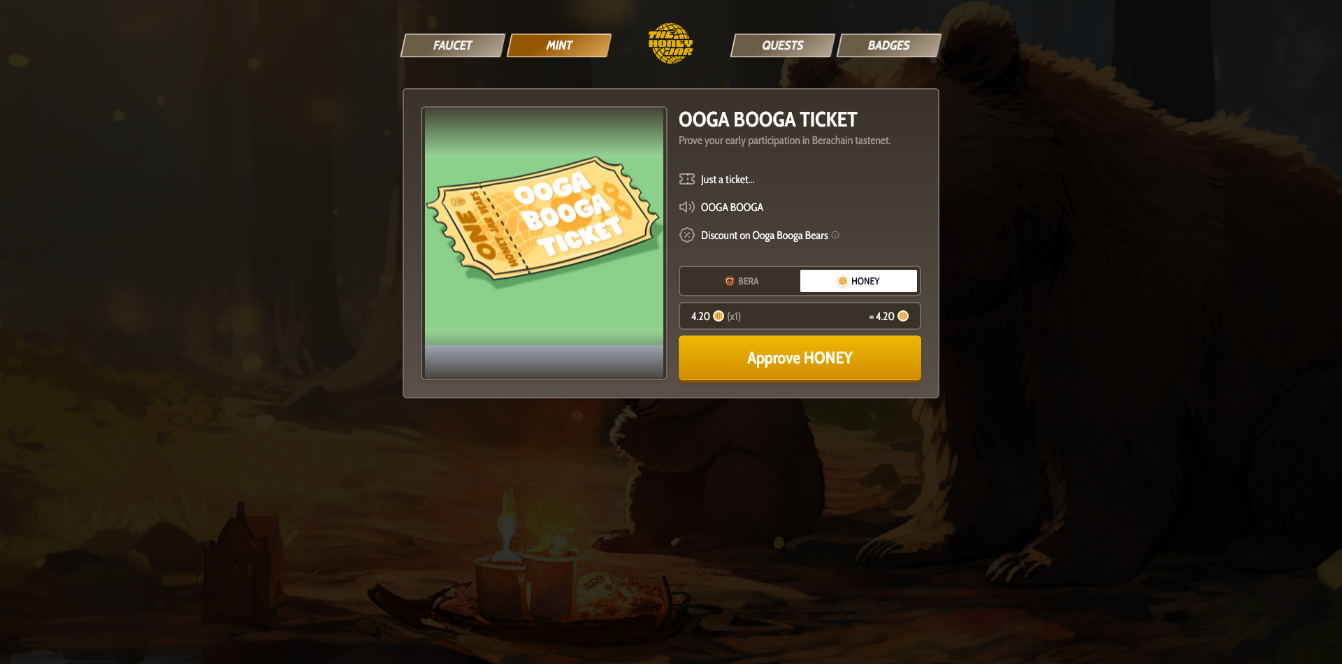 We can use either BERA or HONEY to mint the NFT.