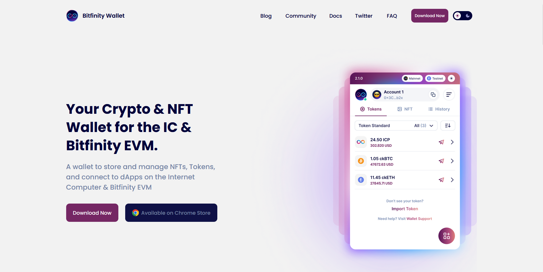 Bitfinity stands out as a high-speed (1000 TPS+), advanced Ethereum Virtual Machine (EVM) of the next generation, functioning as a Layer Two solution for Bitcoin and other on-chain assets related to Bitcoin. With Bitfinity, users gain the ability to deploy smart contracts for Bitcoin, Ordinals, and BRC-20, all coded in Solidity. Notably, Bitfinity is constructed on the Internet Computer.